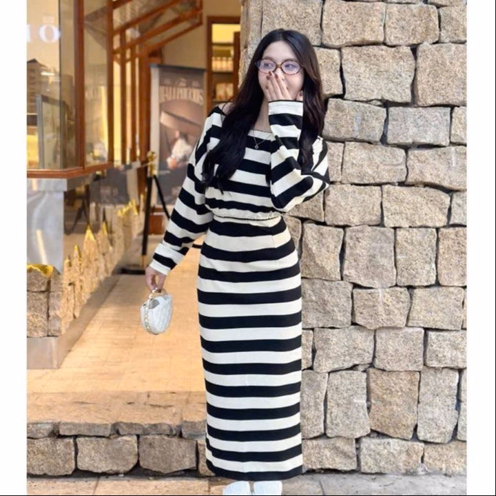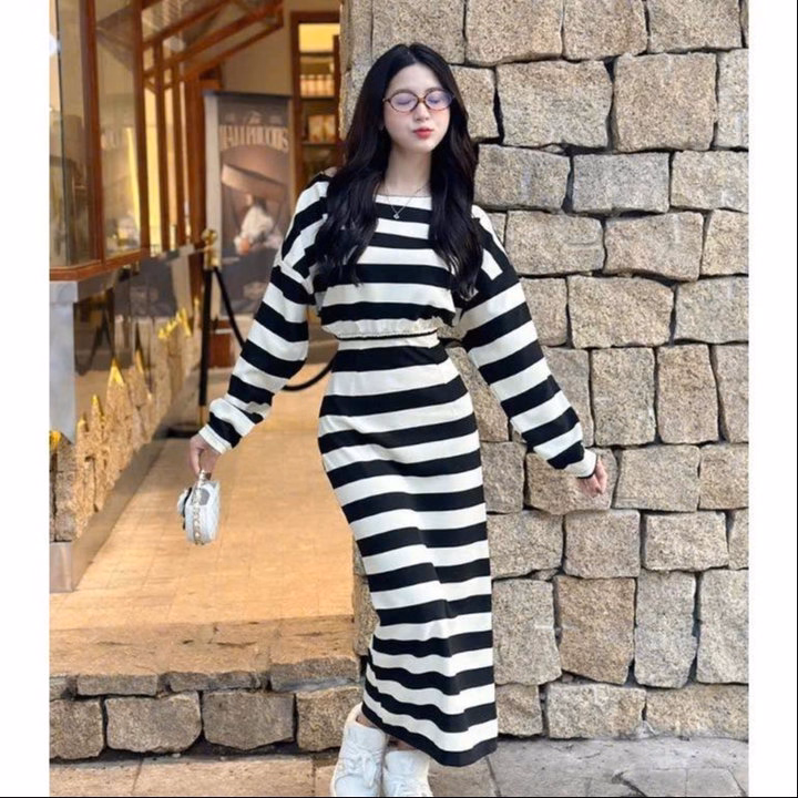 Set Váy Thun Tăm Lạnh Sọc Dài Bt72Wo