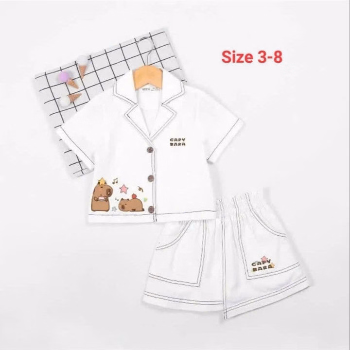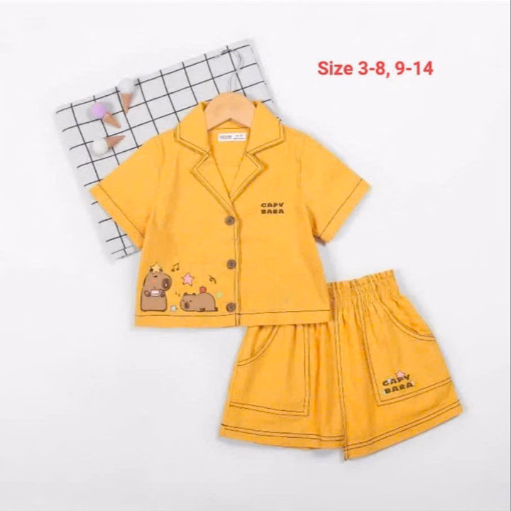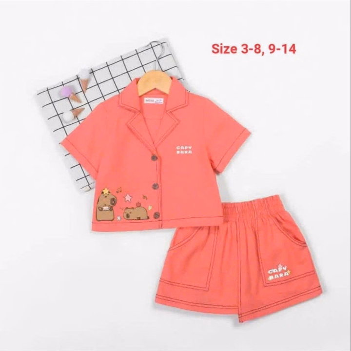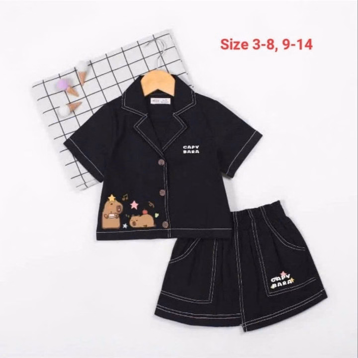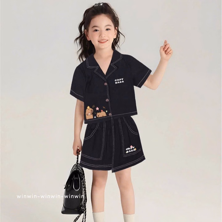 1. Tên sản phẩm : Set Vest Bé Gái In Hình Caybara từ 12-45kg Kèm Chân Váy Lệch Tà Đáng Yêu Cho Bé gái