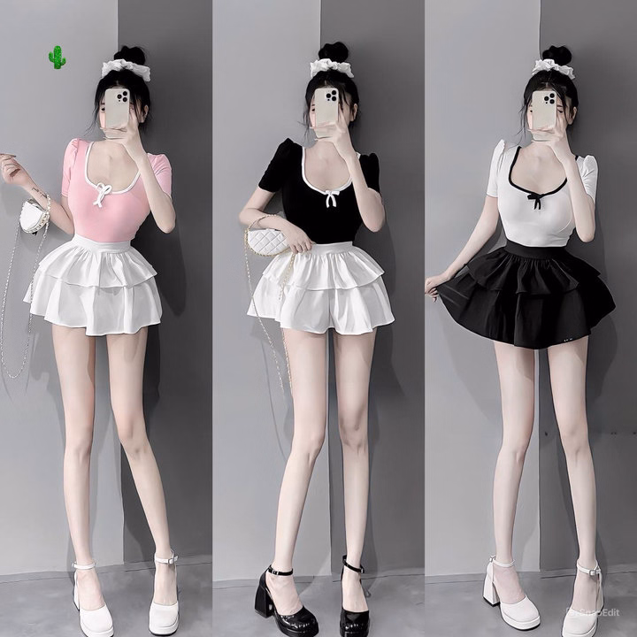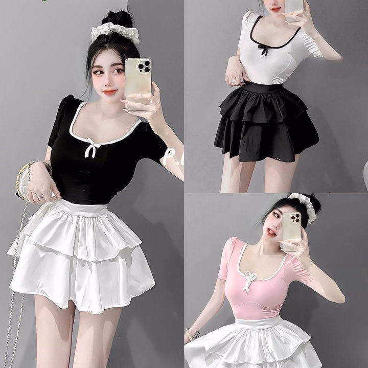 Set Viền Nơ Kèm Chân Váy 2 Tầng – Lê Phương Boutique