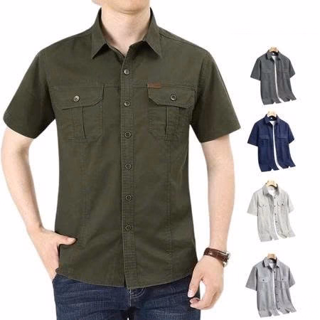 Sơ Mi Nam Ngắn Tay Kaki 2 Túi Form Thỏa Mái, Chất Vải Kaki Dày Dặn, Form Slimfit Thoáng Mát – Gdn