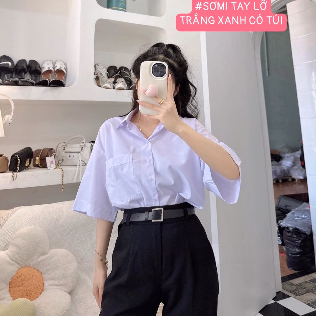 Sơmi Học Sinh Tay Lỡ Có Túi Hàng Cao Cấp – Lê Phương Boutique