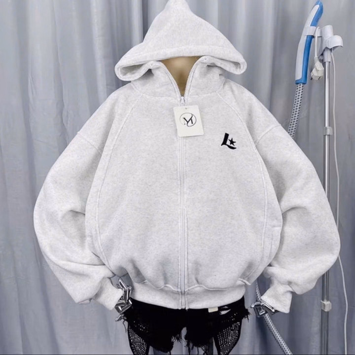[T11] Áo Khoác Nỉ Dệt Thêu Chữ L Logo Form Rộng Khóa Kéo , Dáng Lửng Nón To Unsiex Nữ Chống Nắng
