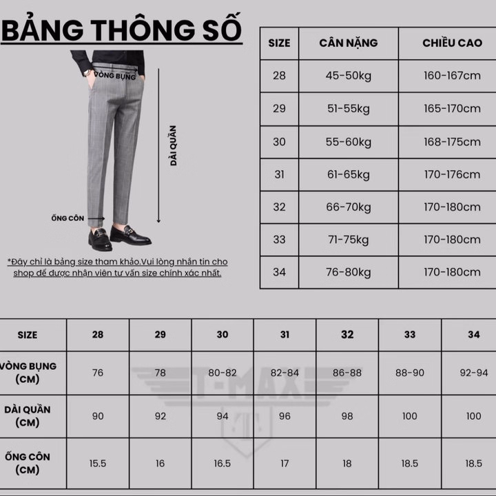 ➡️ Lưu ý: Đối với anh nào có bụng, vui lòng tăng lên 1 size để mặc thoải mái và vừa vặn nhất nhé!