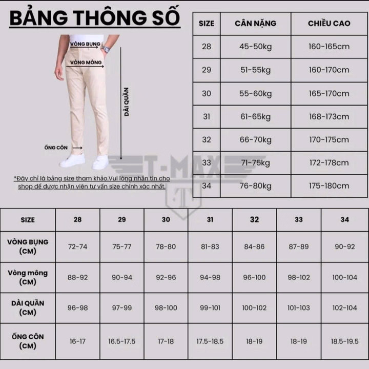 ➡️ Lưu ý: Đối với anh nào có bụng, vui lòng tăng lên 1 size để mặc thoải mái và vừa vặn nhất nhé!