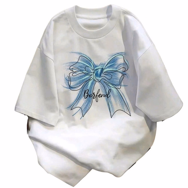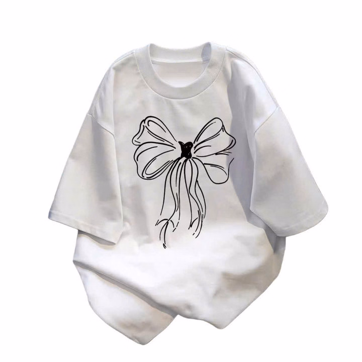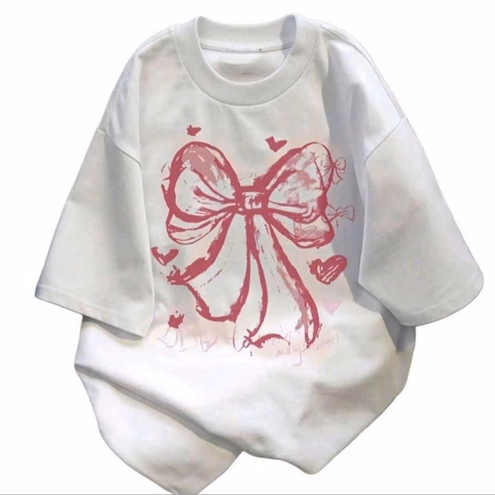 ( Lưu Ý Chất Su Mỏng Mát ) Áo Phông Form Rộng Tay Lỡ Chất Vải Cotton , Áo Cổ Tròn Nam Nữ Unisex – Nơ Loang Hồng