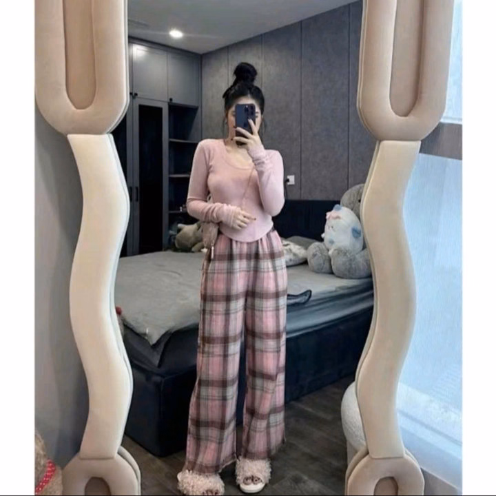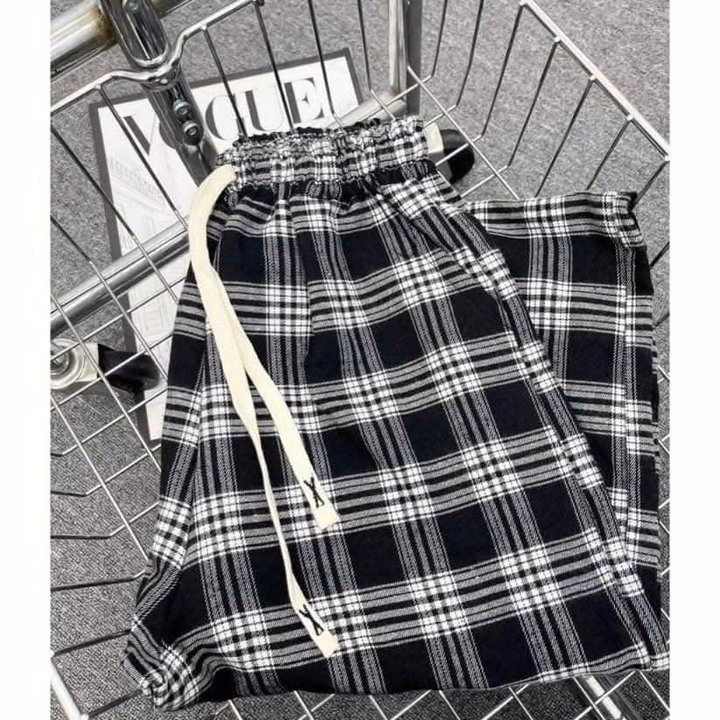 Tổng Hợp Các Mẫu Quần Ống Rộng Kẻ Caro Cạp Cao Lưng Chun