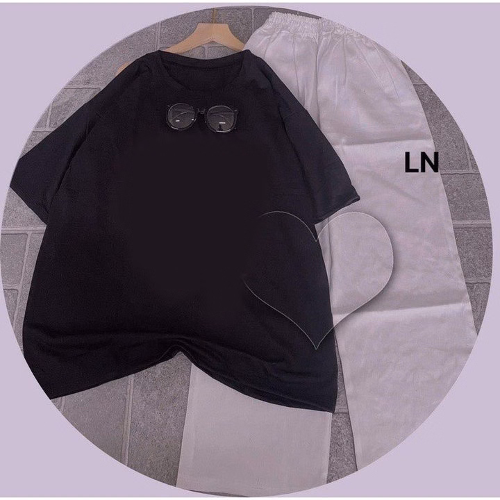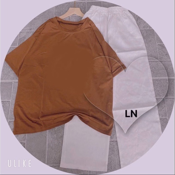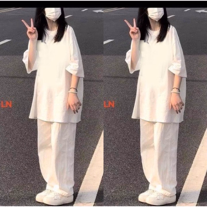 Tổng Hợp Các Mẫu Sét Bộ Nữ Quần Kaki Trắng Cạp Chun + Mix Áo Phông Trơn Cotton Khô 3158