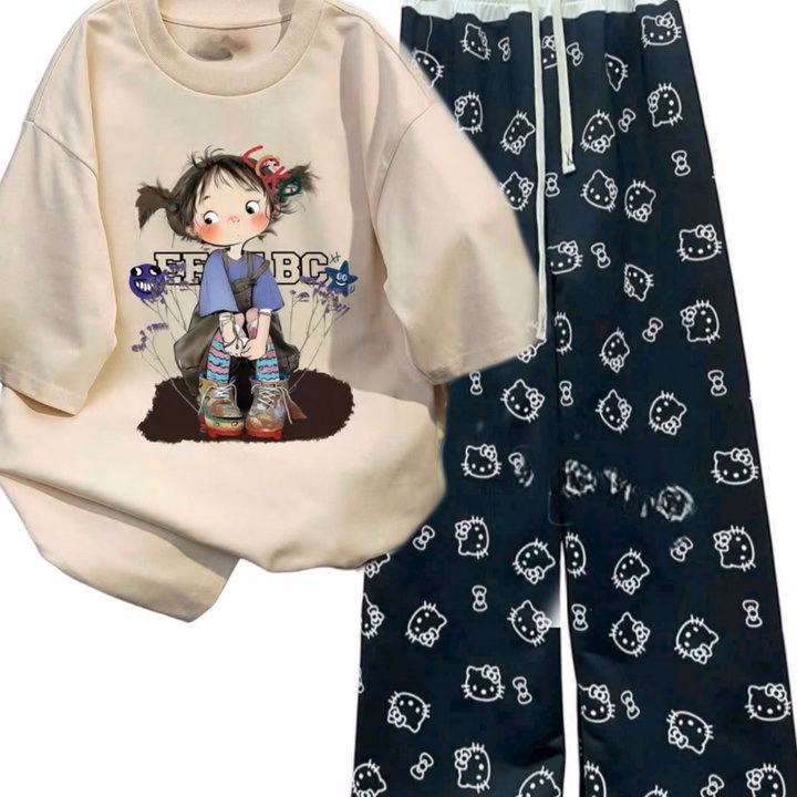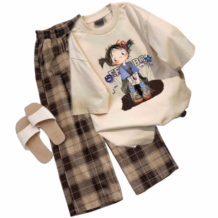 Tổng Hợp Các Sét Bộ Đồ Quần Ống Rộng + Áo Phông Cô Bé Mặc Yếm