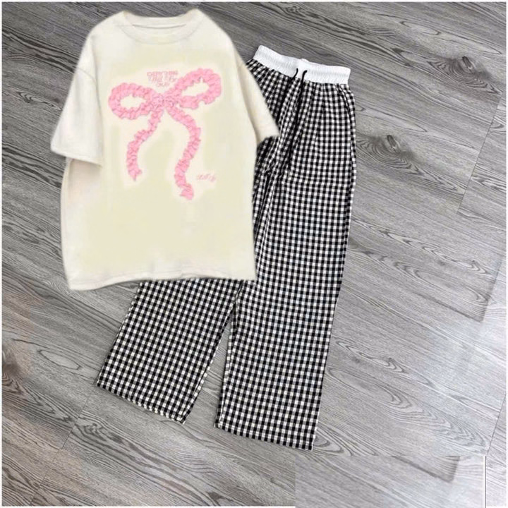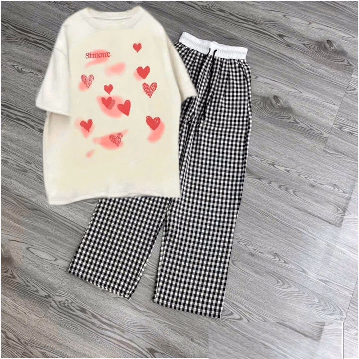 [ Rá Mở Bán ] Sét Bộ Mùa Hè Quần Kẻ Caro Bản To Đen+Mix Áo Phông Form Rộng Tay Lỡ – Chữ Love