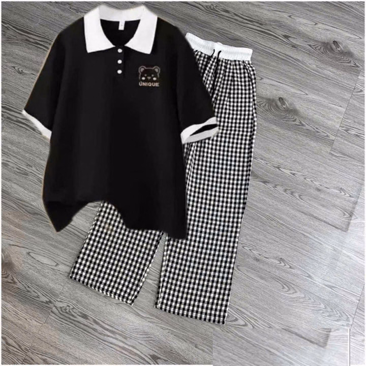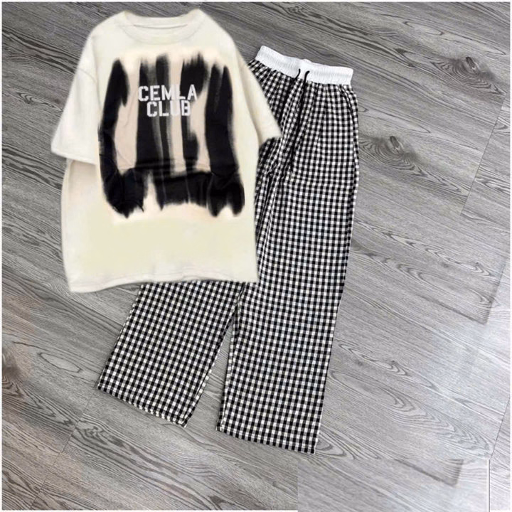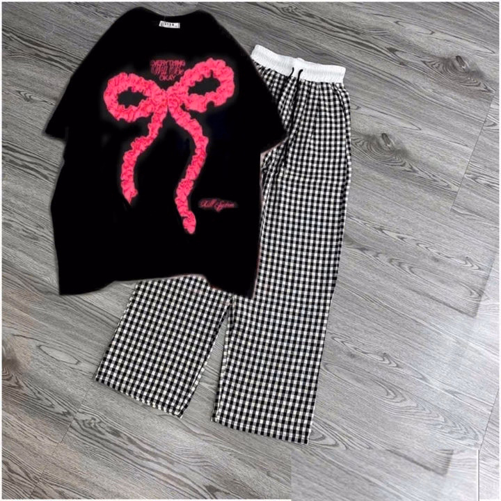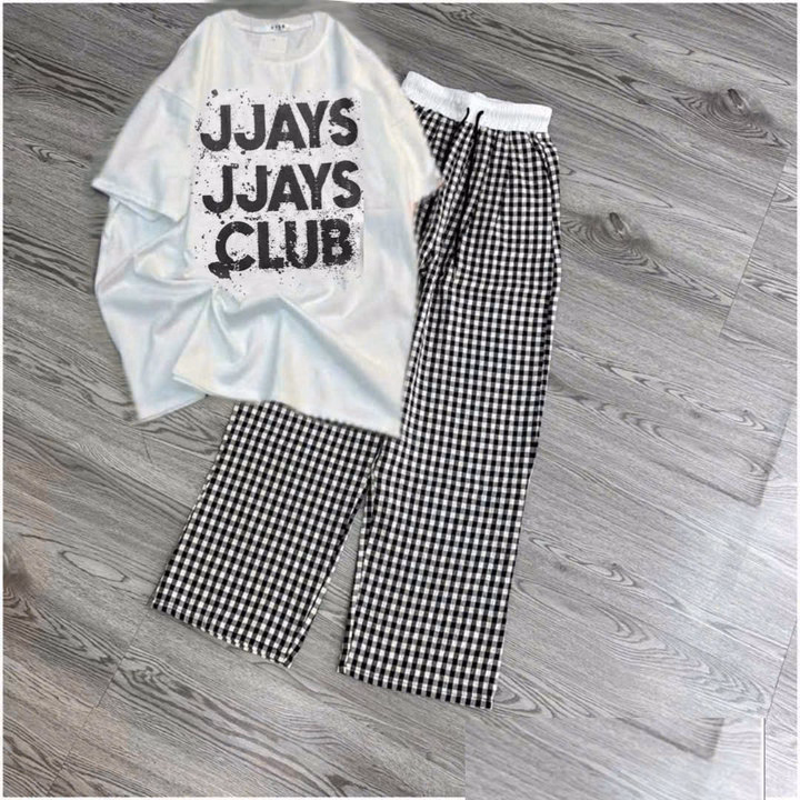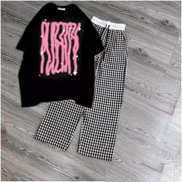 Tổng Hợp Các Sét Bộ Đồ Quần Ống Rộng Kẻ Caro Cạp Trắng Caro Mini Đen+ Mix Áo Phông Form Rộng Tay Lỡ Nam Nữ Unisex