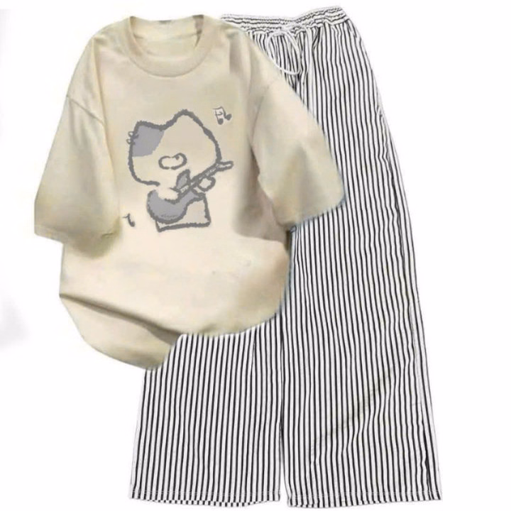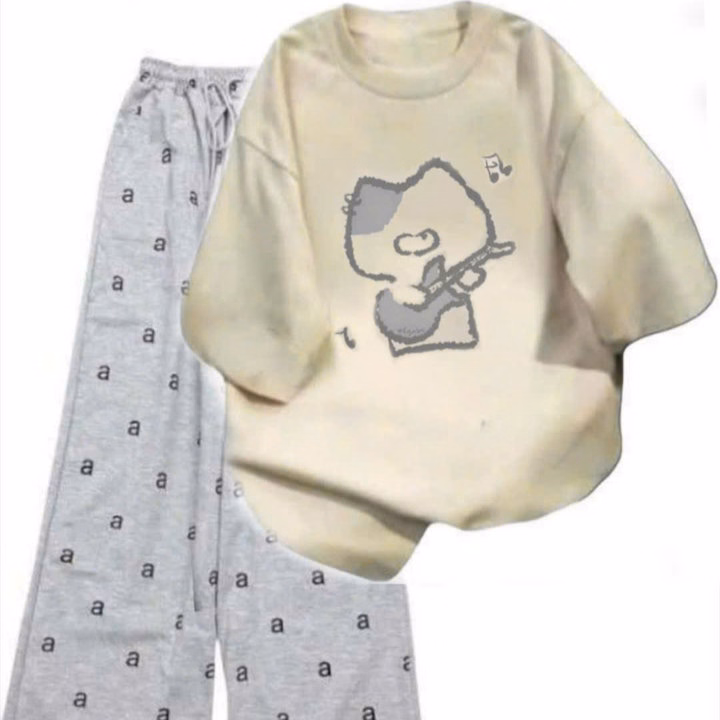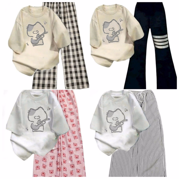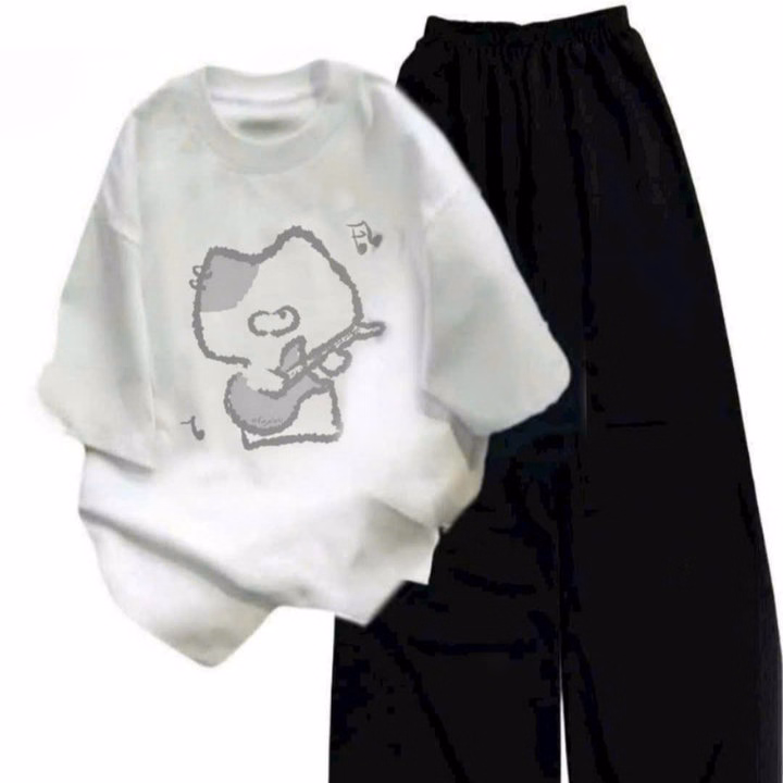 – Tên Sản phẩm: Tổng hợp các sét bộ đồ quần ống suông + mix áo phông form rộng tay lỡ – hình mèo đánh đàn