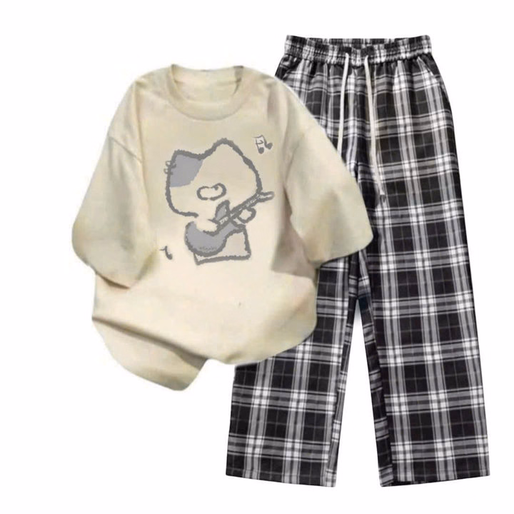 Tổng Hợp Các Sét Bộ Đồ Quần Ống Suông + Mix Áo Phông Form Rộng Tay Lỡ – Hình Mèo Đánh Đàn