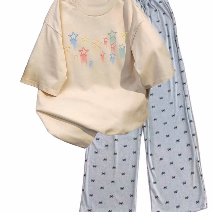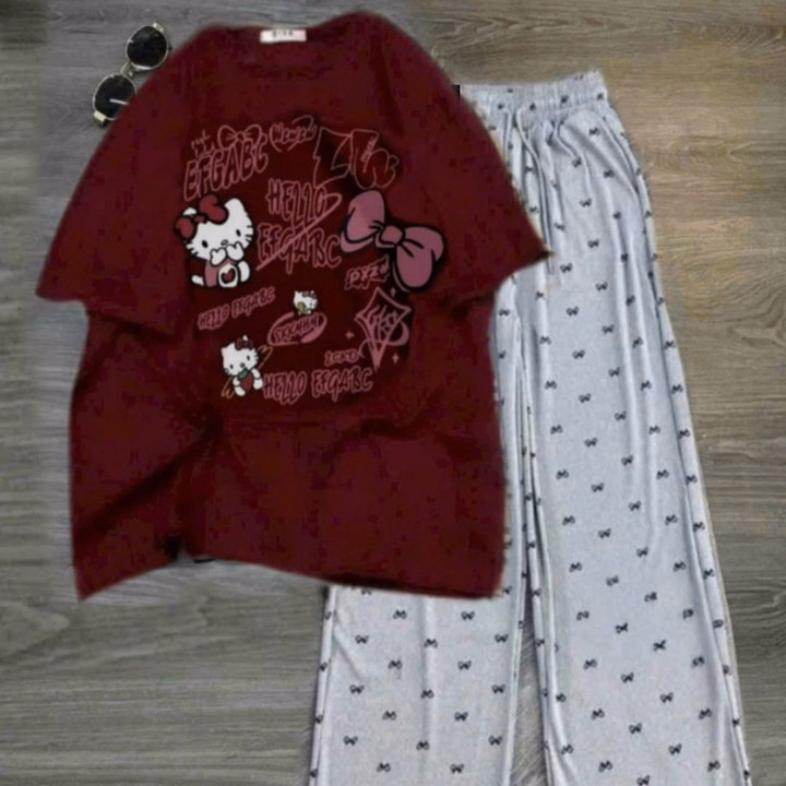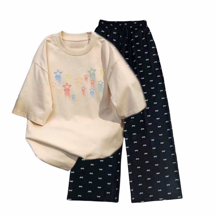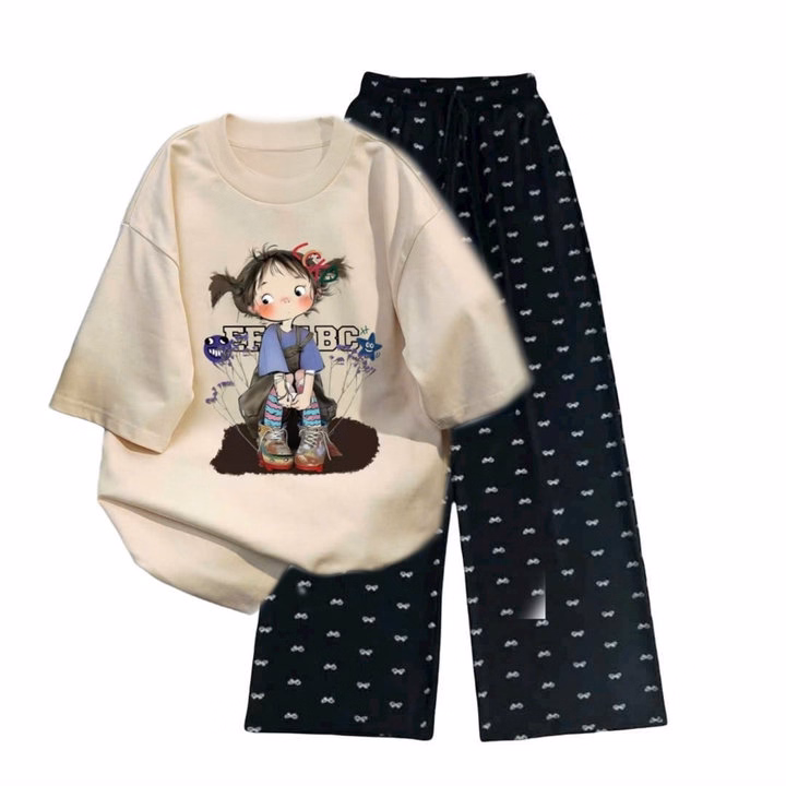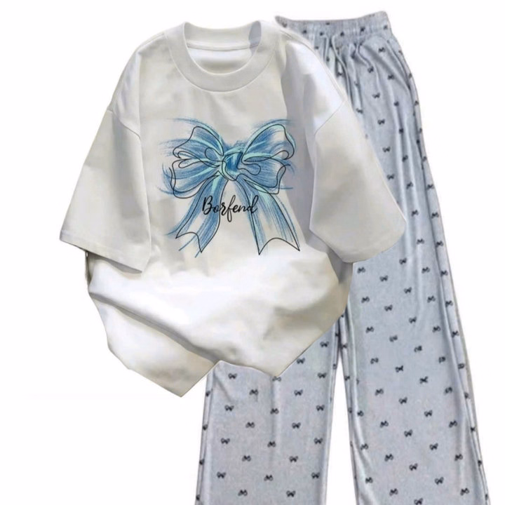 Tổng Hợp Các Set Bộ Quần Họa Tiết Nơ+ Mix Áo Phông Form Rộng Tay Lỡ Chất Cotton Thoáng Mát