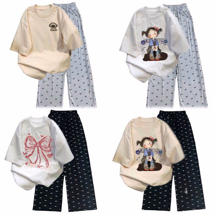 – Tên Sản phẩm: Tổng hợp các set bộ quần họa tiết nơ+ mix áo phông form rộng tay lỡ chất cotton thoáng mát