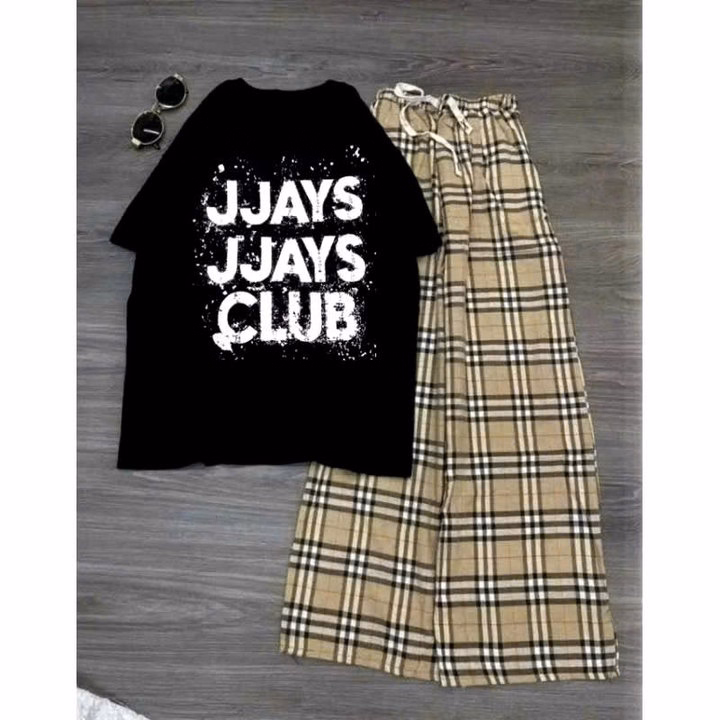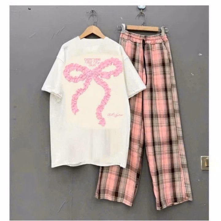 Tổng Hợp Các Set Bộ Quần Kẻ Caro + Mix Áo Phông Form Rộng