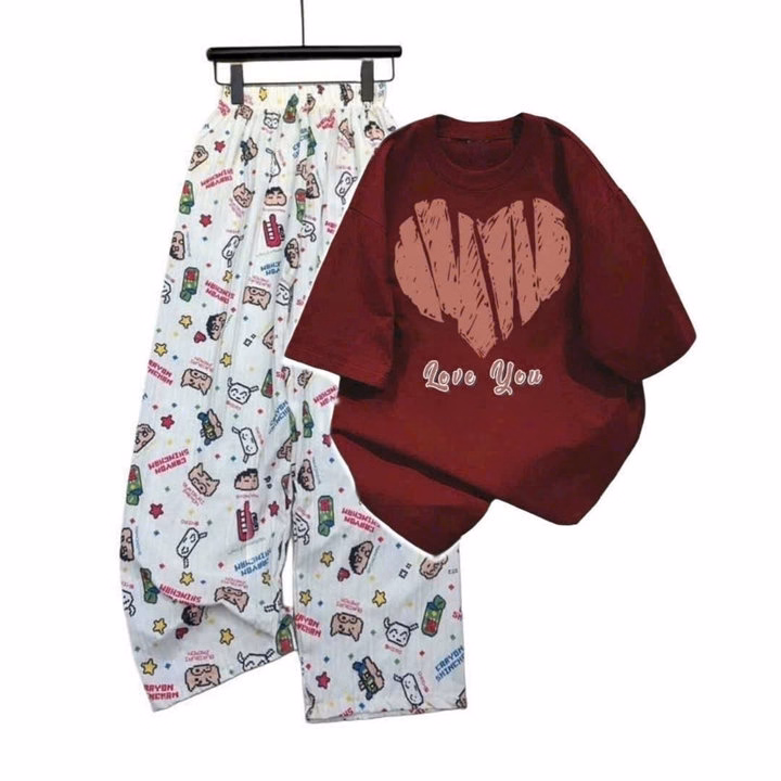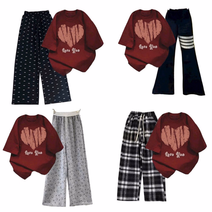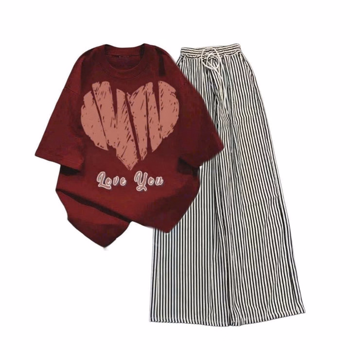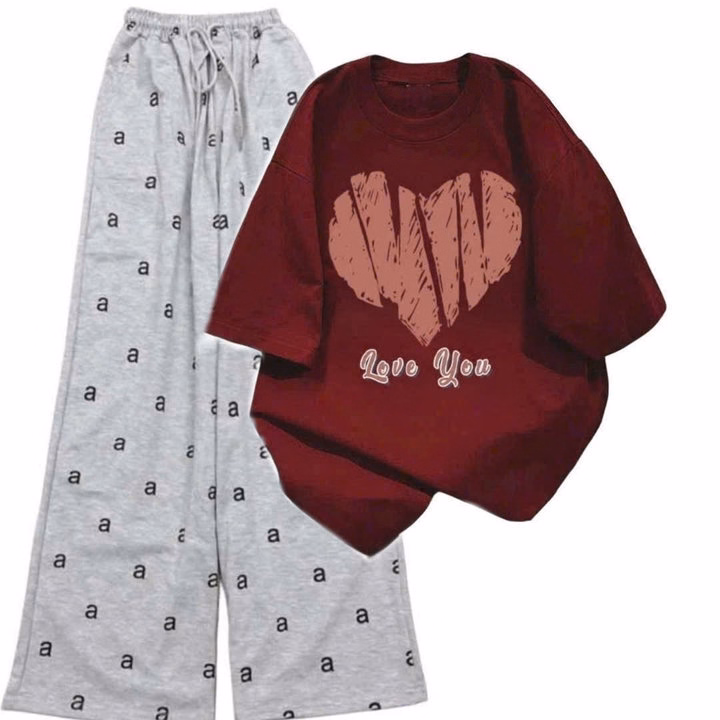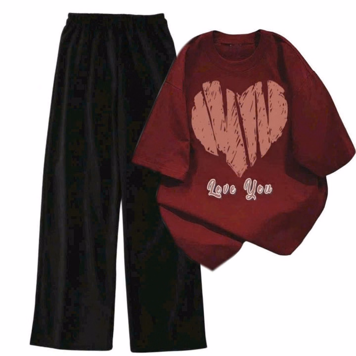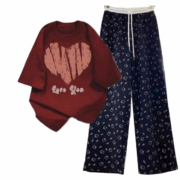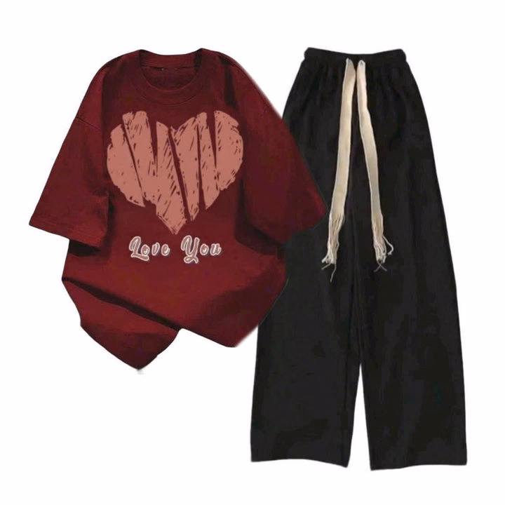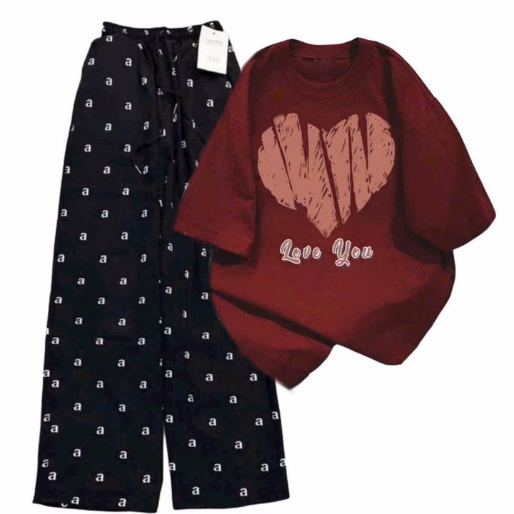 – Tên Sản phẩm: Tổng hợp các sét bộ quần ống rộng cạp cao dáng dài+ mix áo phông form rộng chữ Love You