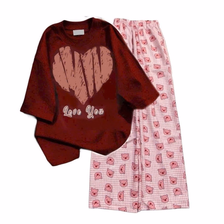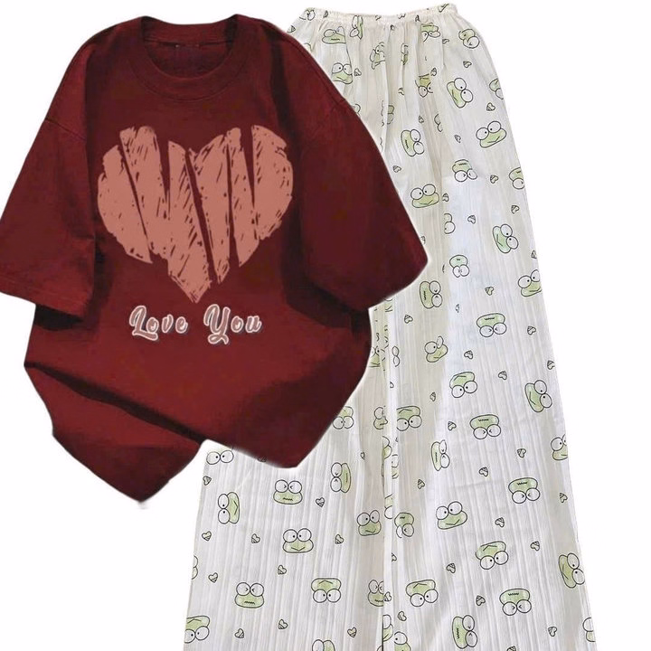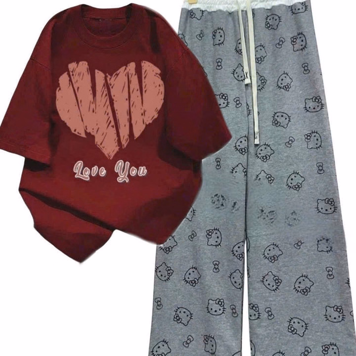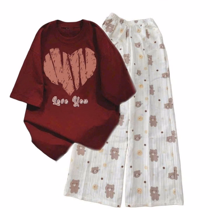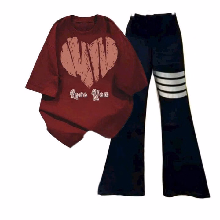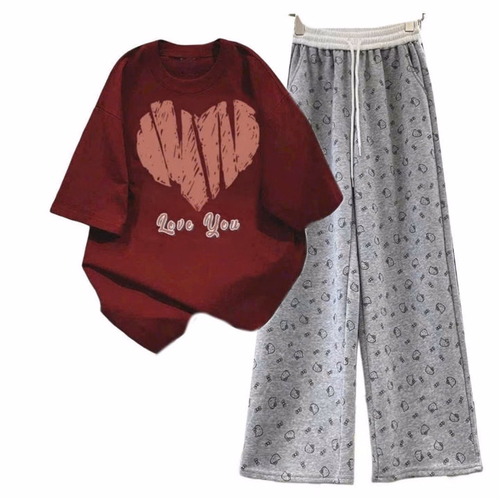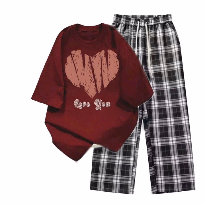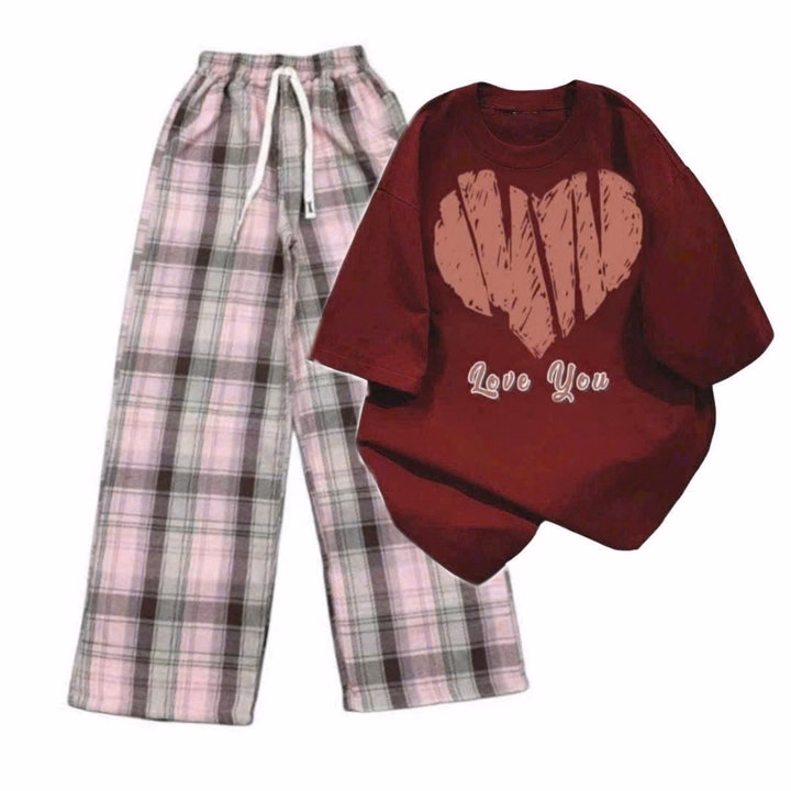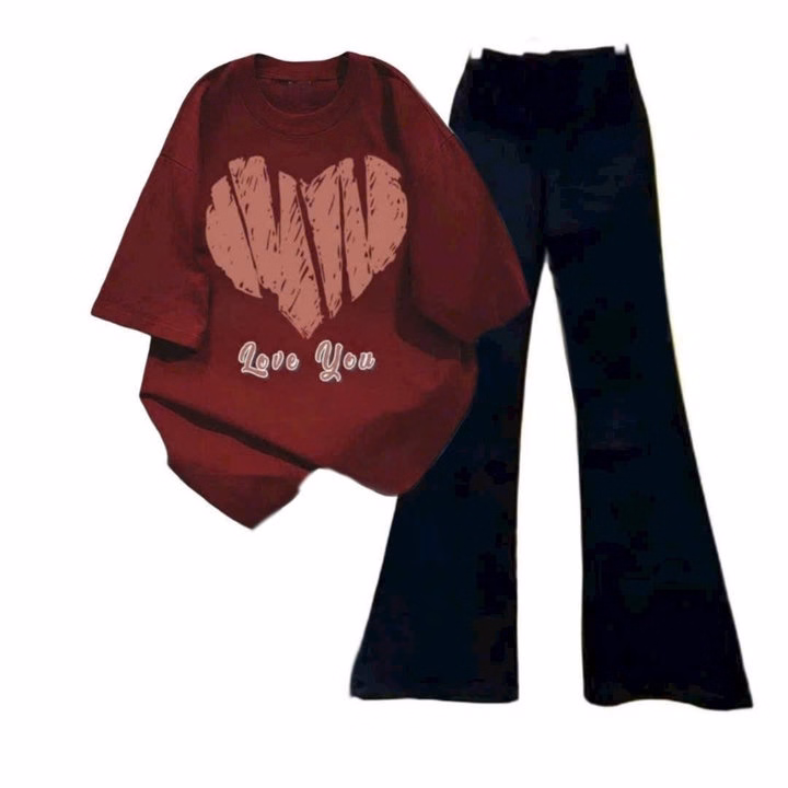 – Tên Sản phẩm: Tổng hợp các sét bộ quần ống rộng cạp cao dáng dài+ mix áo phông form rộng chữ Love You