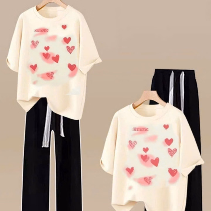 | Màu sắc | quần đen + áo nơ rúm be, quần đen + áo nơ rúm đen, quần đen + áo trái tim be |