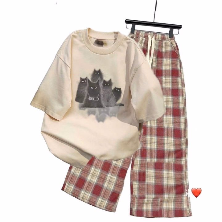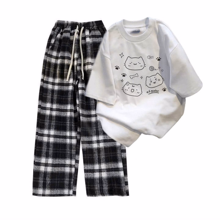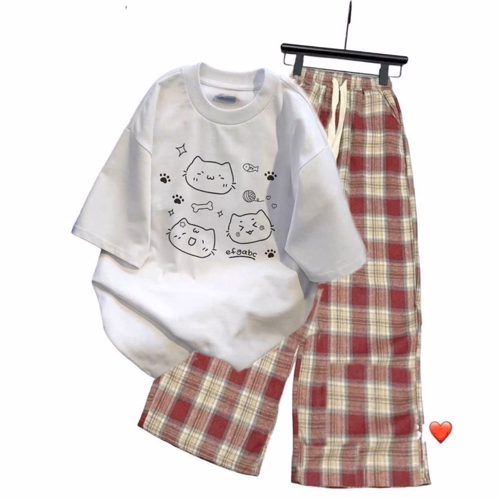 [ Rá Mở Bán ] Sét Bộ Mùa Hè Quần Kẻ Caro Bản To Đen+Mix Áo Phông Form Rộng Tay Lỡ – Chữ Love