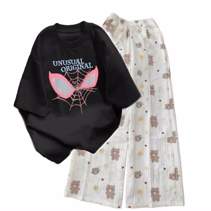 Tổng Hợp Các Set Bộ Quần Ống Rộng + Mix Áo Phông Nhện Form Rộng Tay Lỡ