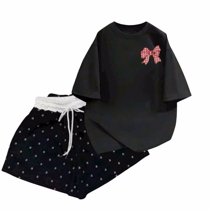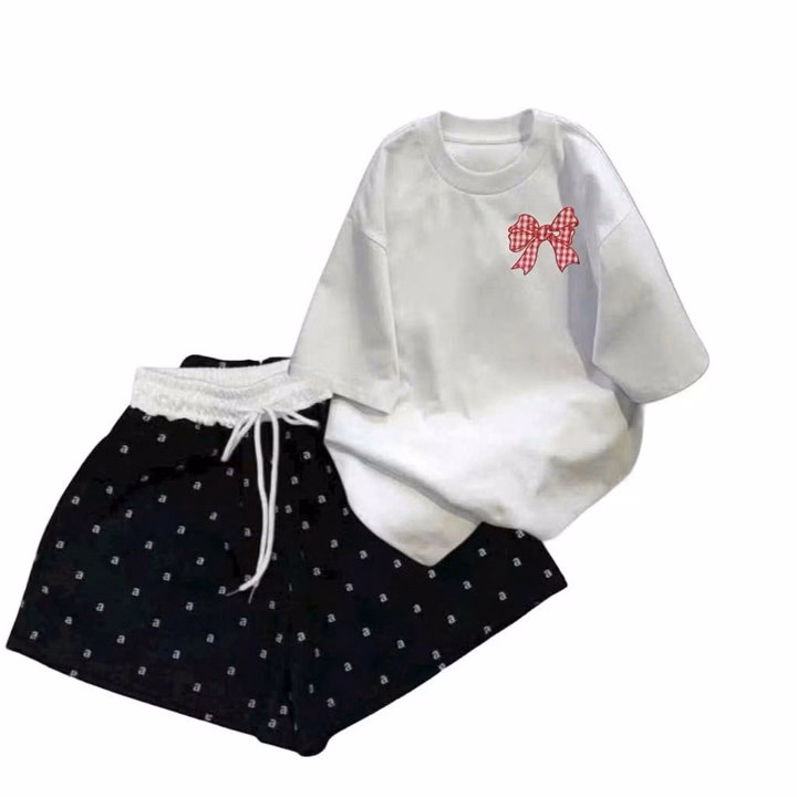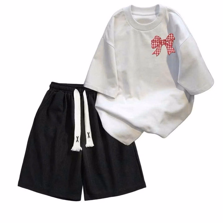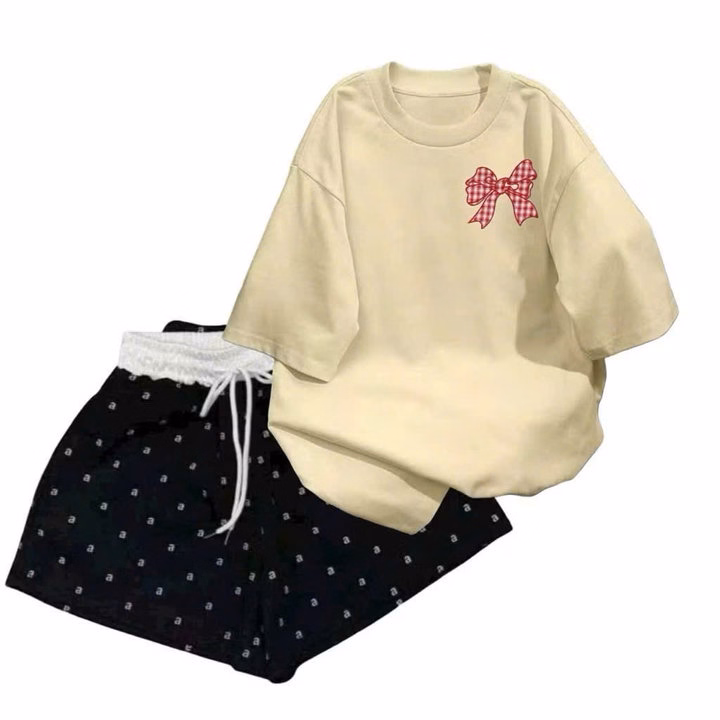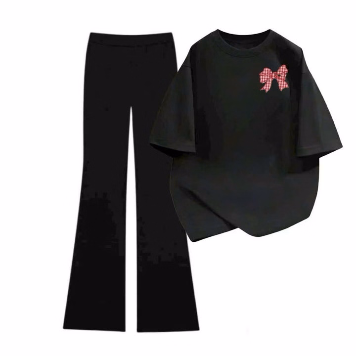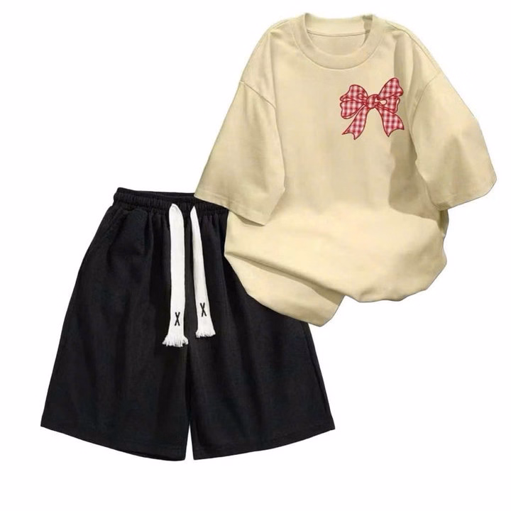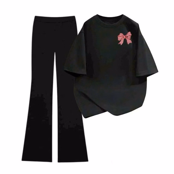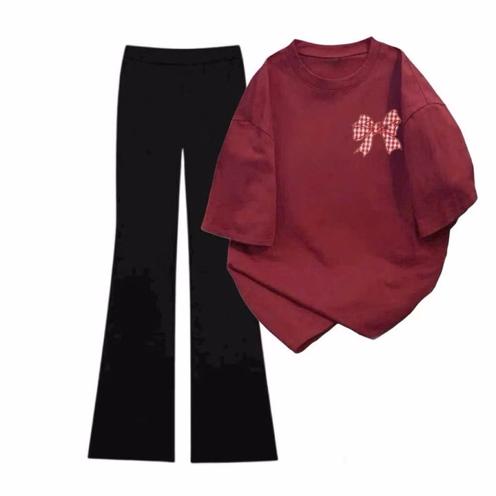 Tổng Hợp Các Sét Bộ Quần Ống Suông Dài+Mix Áo Phông Form Rộng -Hình Nơ Kẻ Caro Đỏ In Áo Ngực