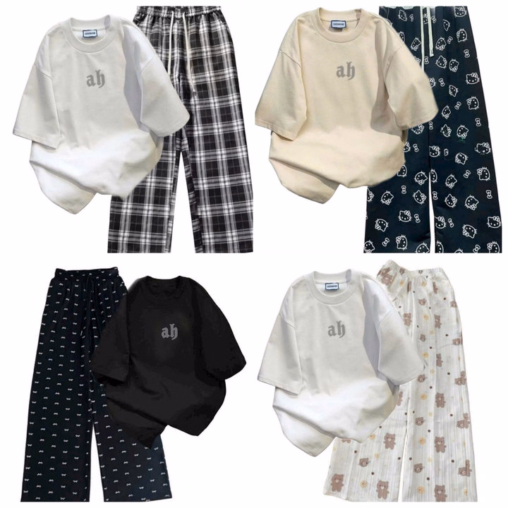 Tổng Hợp Các Sét Bộ Quần Ống Suông + Mix Áo Phông Form Rộng Tay Lỡ Chất Cotton Su – Chữ A – B