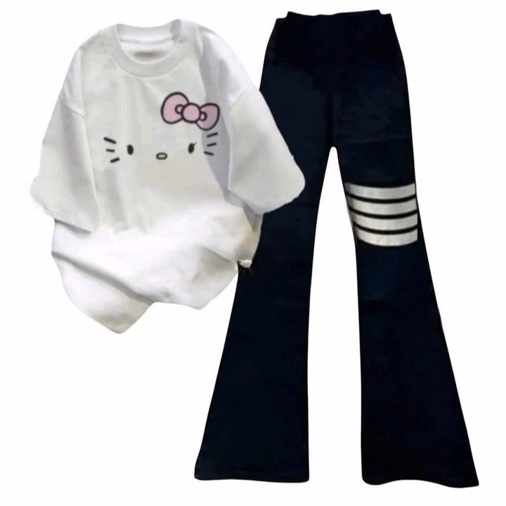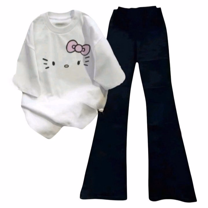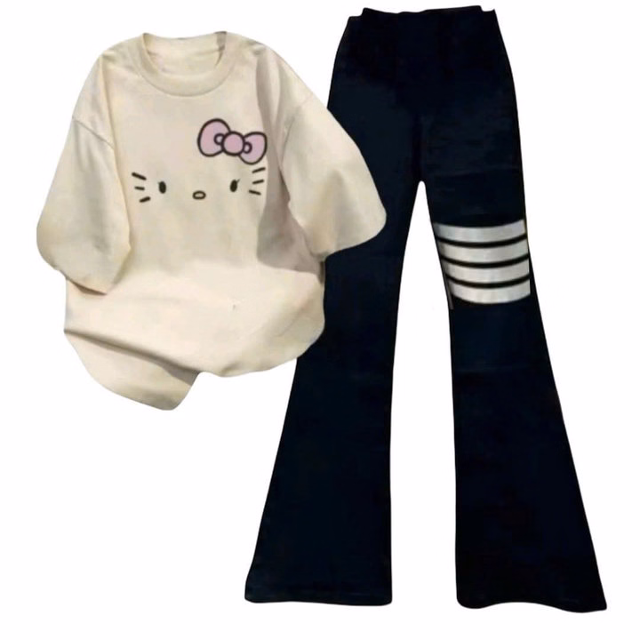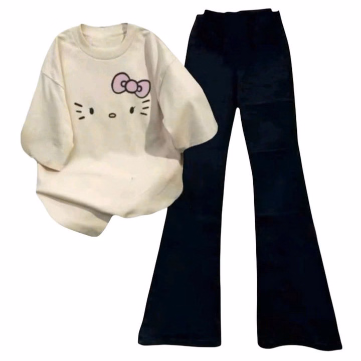 Tổng Hợp Các Sét Bộ Quần Suông Cạp Cao + Mix Áo Phông Form Rộng Unisex – Hình Mèo Từ Chất Liệu Cotton Và Da Cá Siêu Đẹp