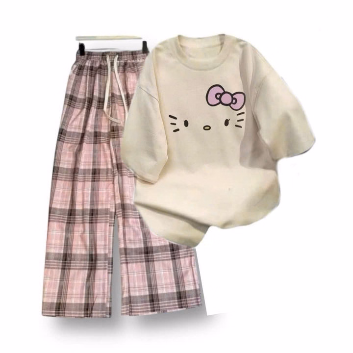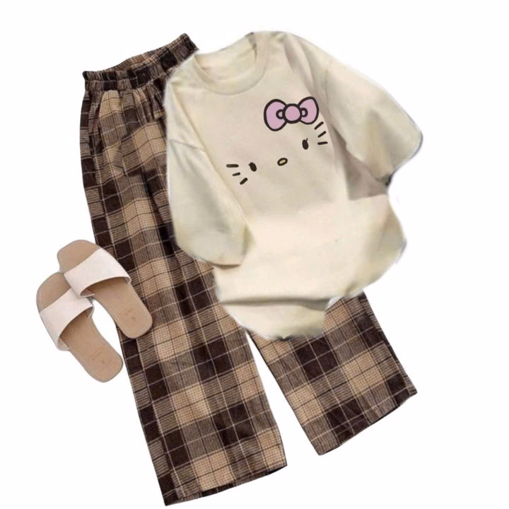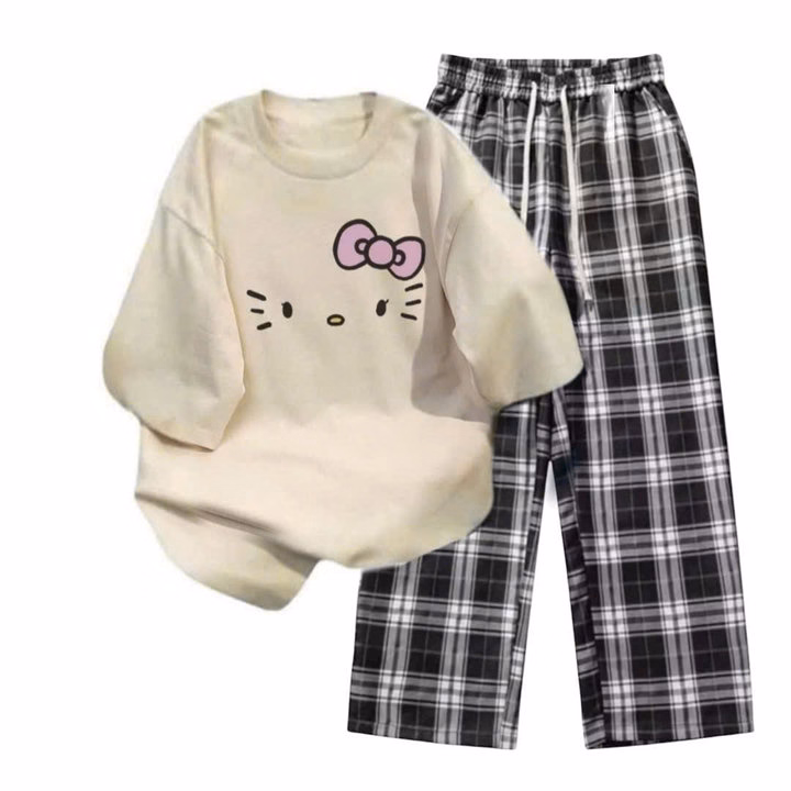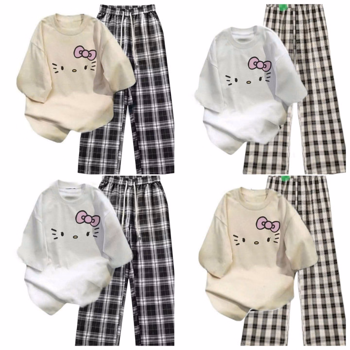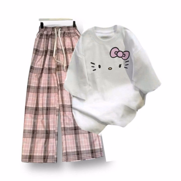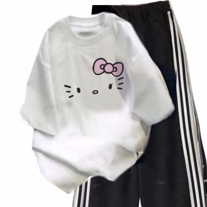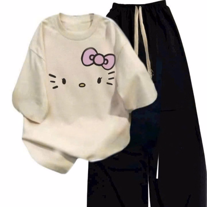 Tổng Hợp Các Sét Bộ Quần Suông Cạp Cao + Mix Áo Phông Form Rộng Unisex – Hình Mèo Từ Chất Liệu Cotton Và Da Cá Siêu Đẹp