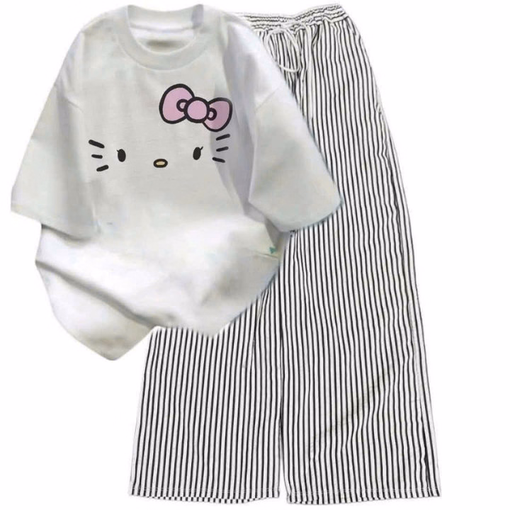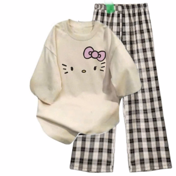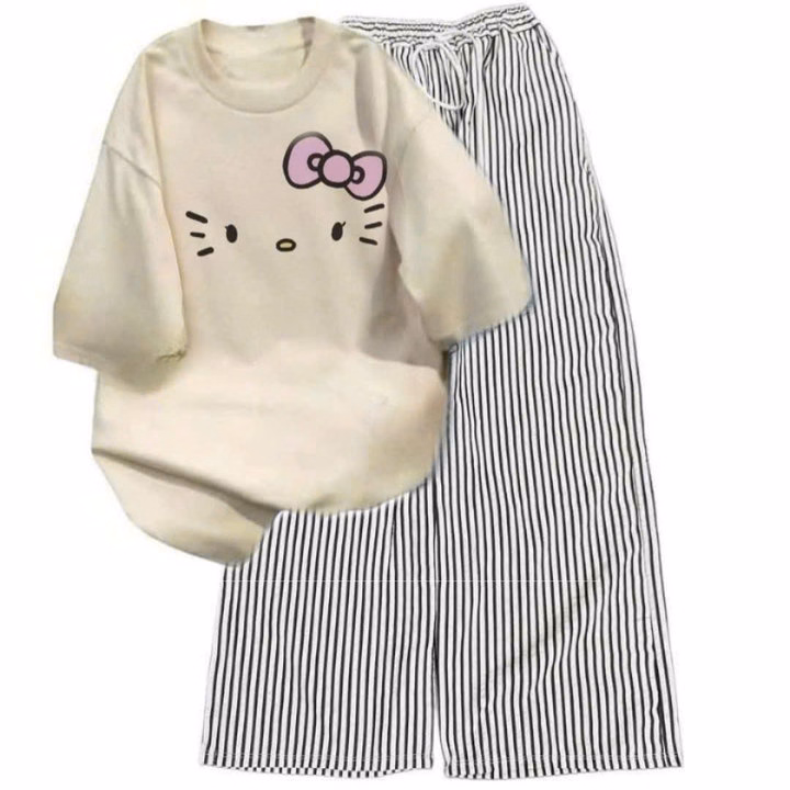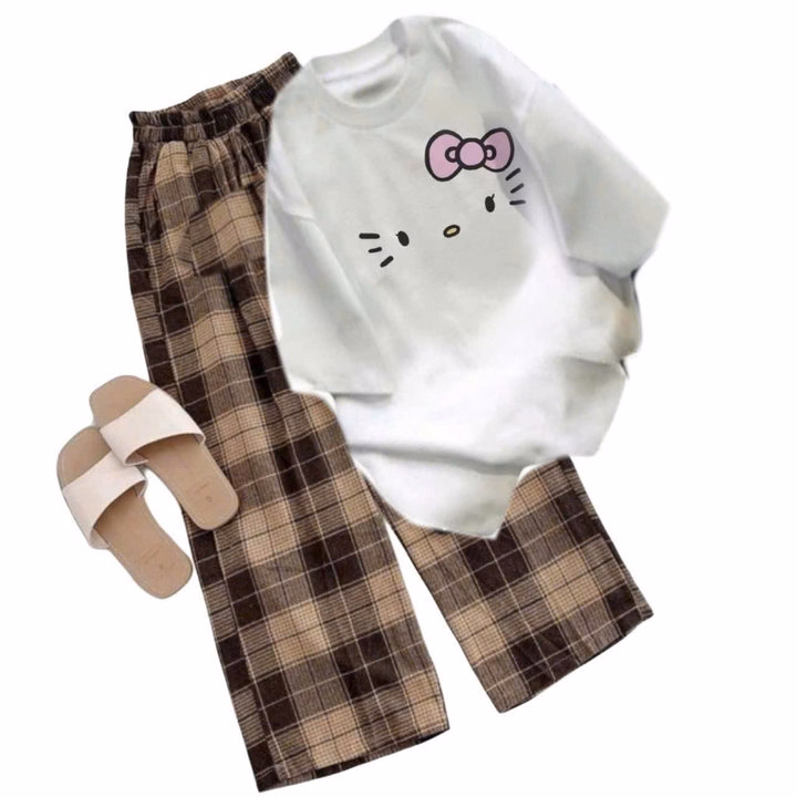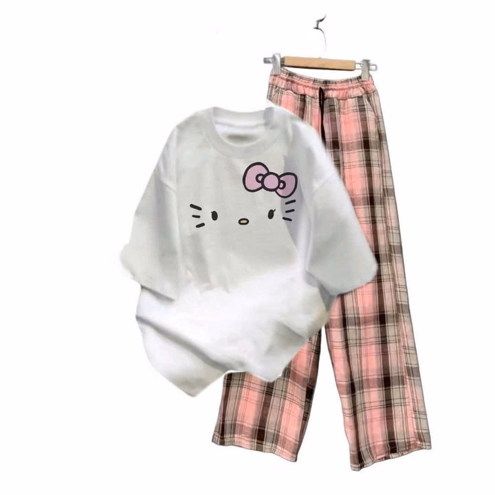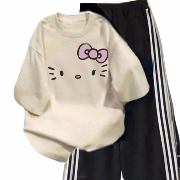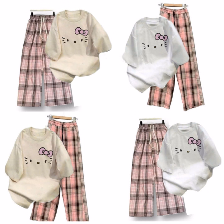 Tổng Hợp Các Sét Bộ Quần Suông Cạp Cao + Mix Áo Phông Form Rộng Unisex – Hình Mèo Từ Chất Liệu Cotton Và Da Cá Siêu Đẹp