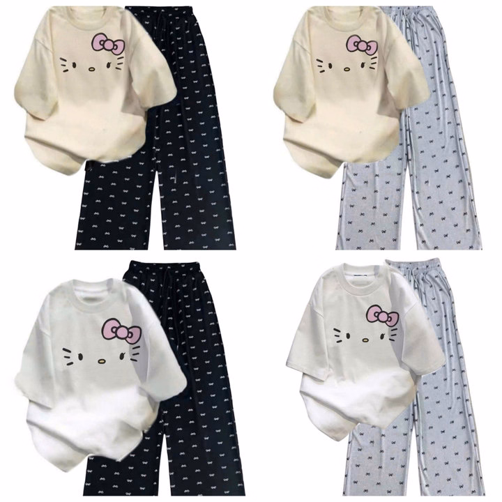 – Tên Sản phẩm: Tổng Hợp Các Sét Bộ Quần Suông Cạp Cao + Mix Áo Phông Form Rộng Unisex – Hình Mèo từ chất liệu cotton và da cá siêu đẹp
