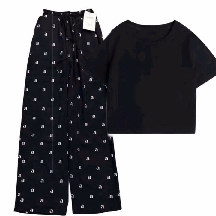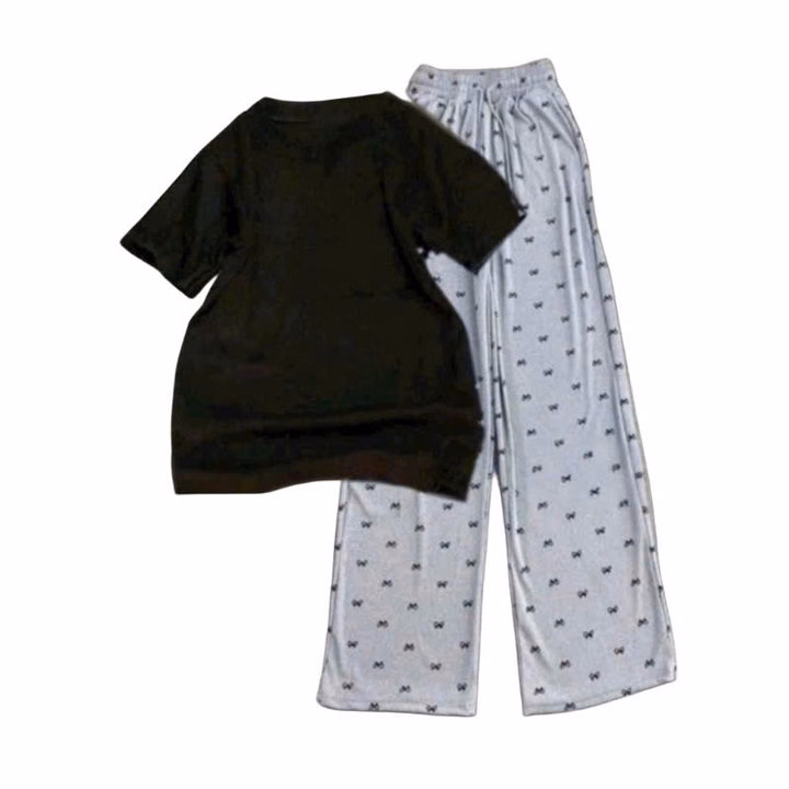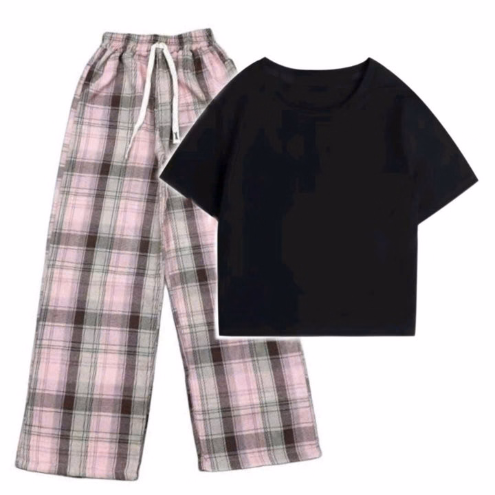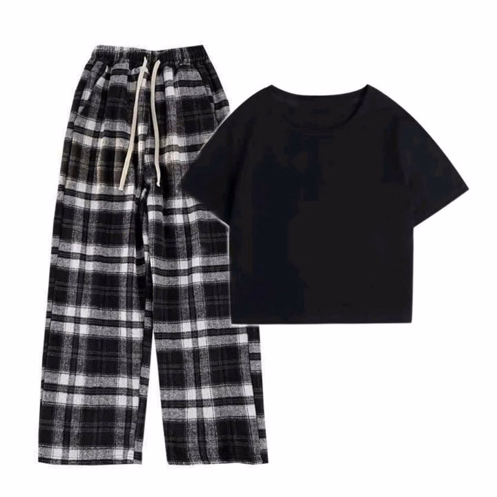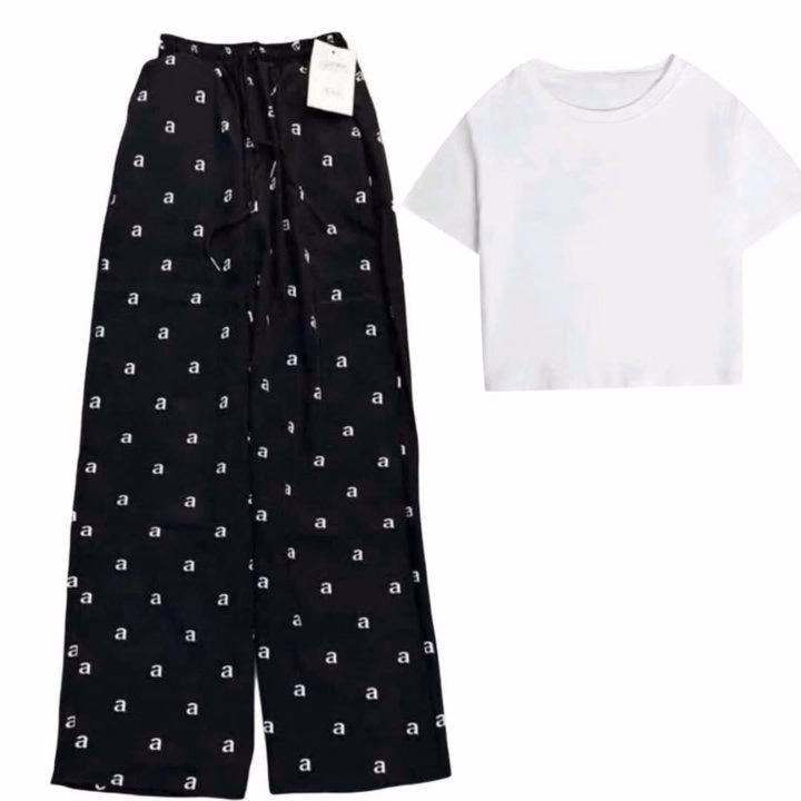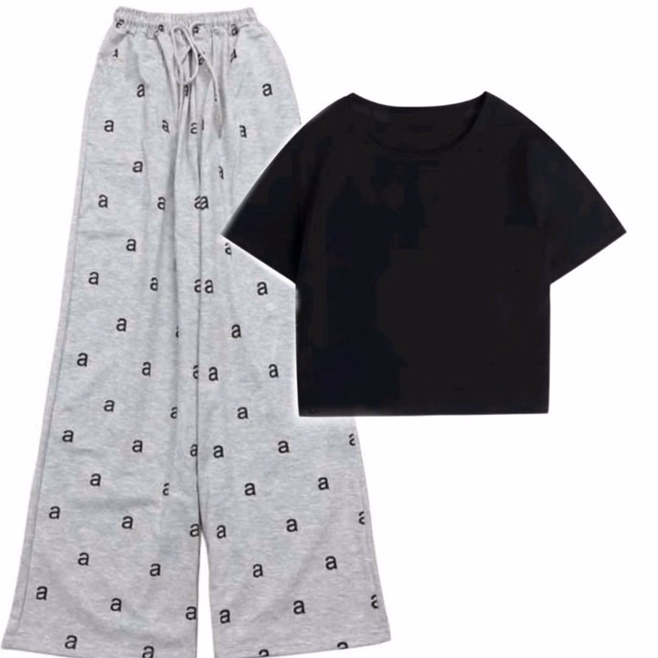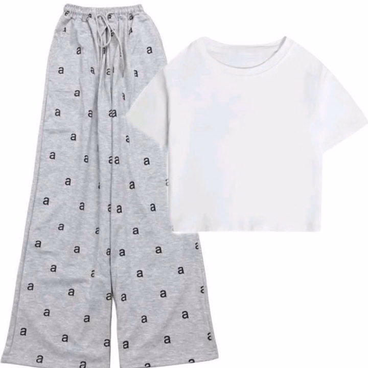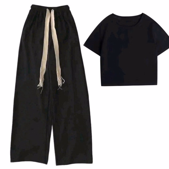 Tổng Hợp Các Sét Quần Ống Rộng + Áo Phông Croptop Cộc Tay Trơn Dáng Ngắn Chất Tăm Hàn Lạnh Cho Nữ