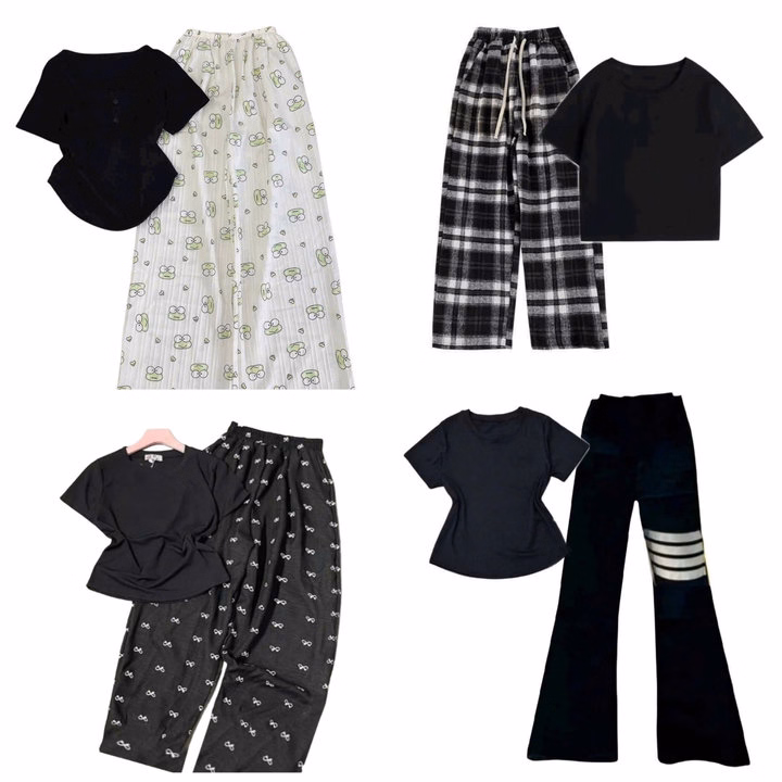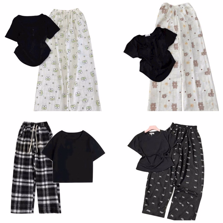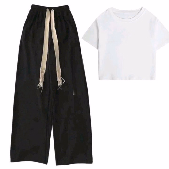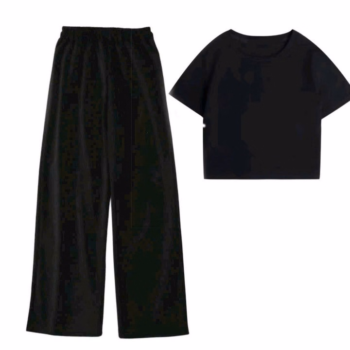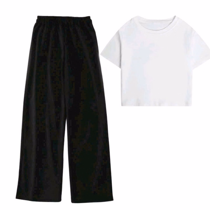 – Tên Sản phẩm: Tổng hợp các sét quần ống rộng + áo phông croptop cộc tay trơn dáng ngắn chất tăm Hàn lạnh cho Nữ