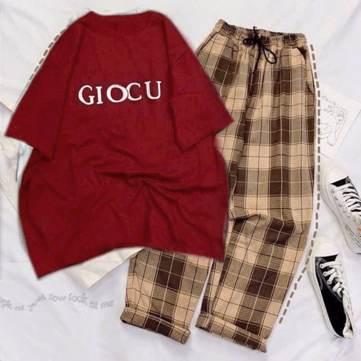 Tổng Hợp Các Sét Quần Ống Rộng + Mix Áo Phông Form Rộng Chữ- Giccu Đỏ