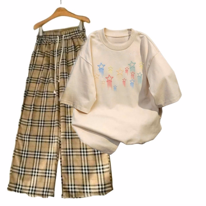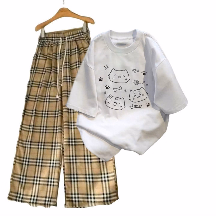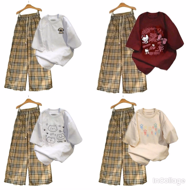 – Tên Sản phẩm: Tổng hợp quần caro vàng + mix áo phông form rộng tay lỡ chất cotton