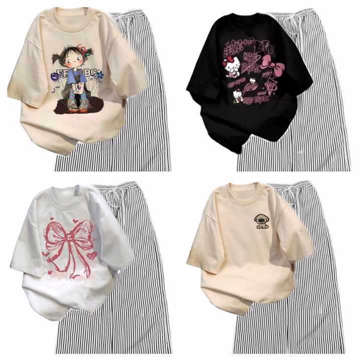 Tổng Hợp Quần Đũi Vằn + Áo Phông Form Rộng Tay Lỡ Mẫu Mới Chất Cotton Mềm Mịn