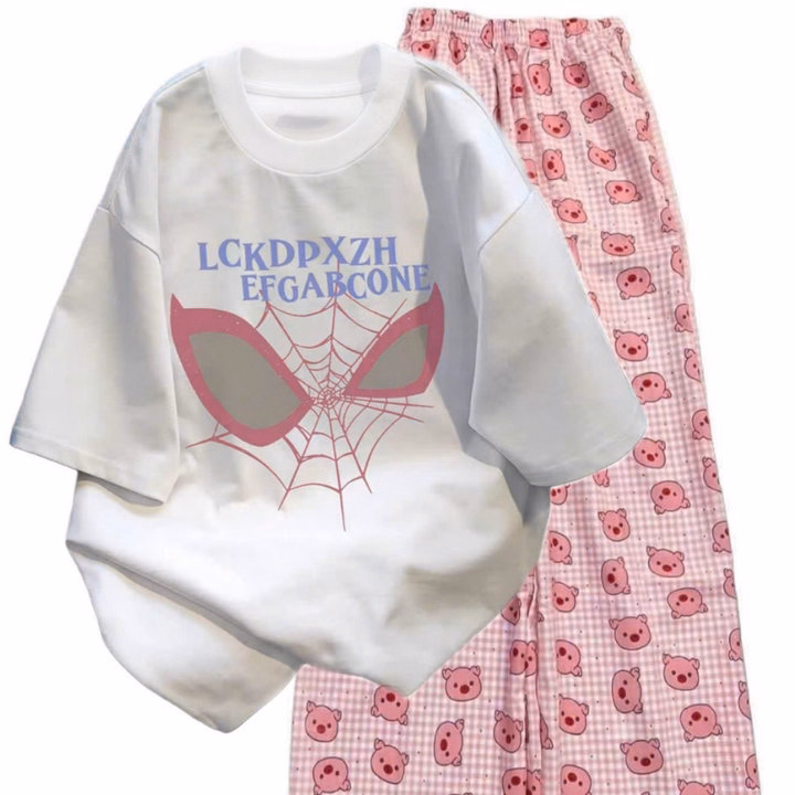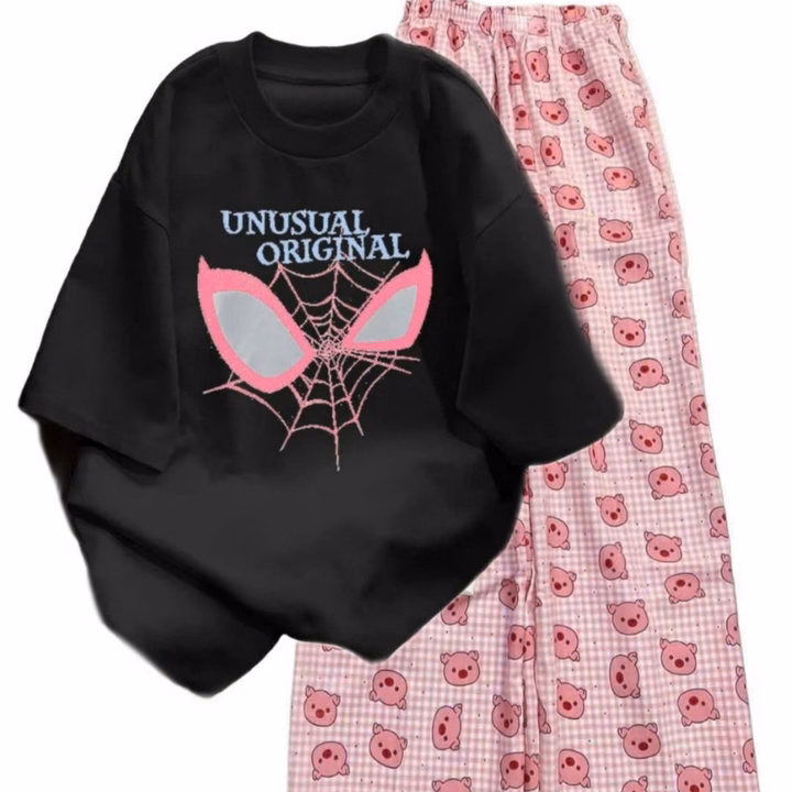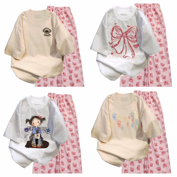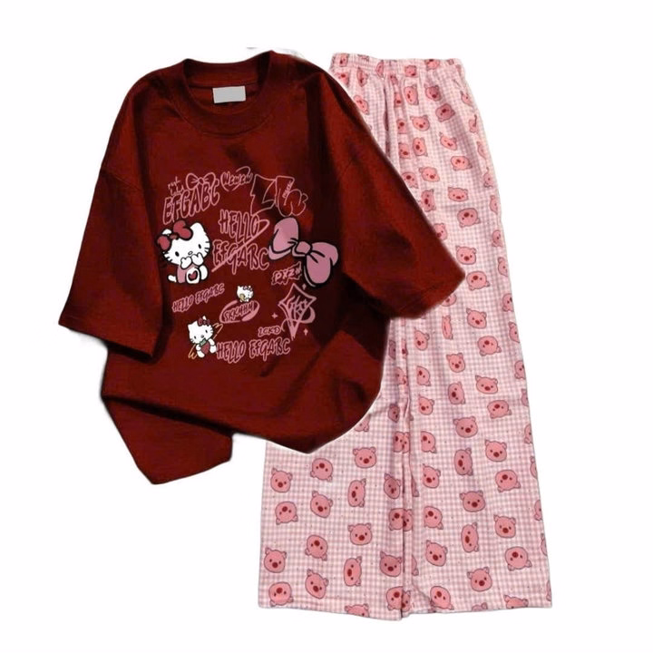 – Tên Sản phẩm: Tổng hợp quần hoạt hình heo hồng + áo phông form rộng tay lỡ chất cotton
