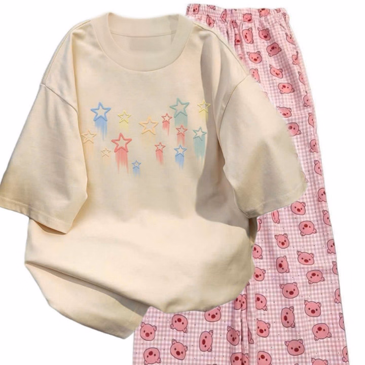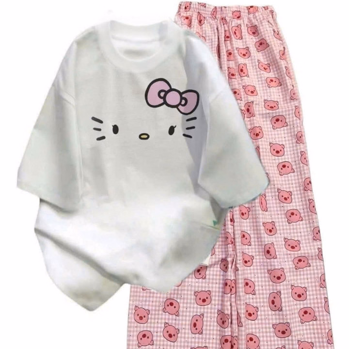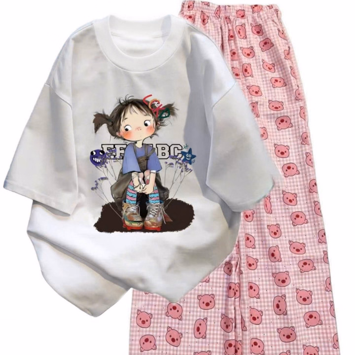 Tổng Hợp Quần Hoạt Hình Heo Hồng + Áo Phông Form Rộng Tay Lỡ Chất Cotton