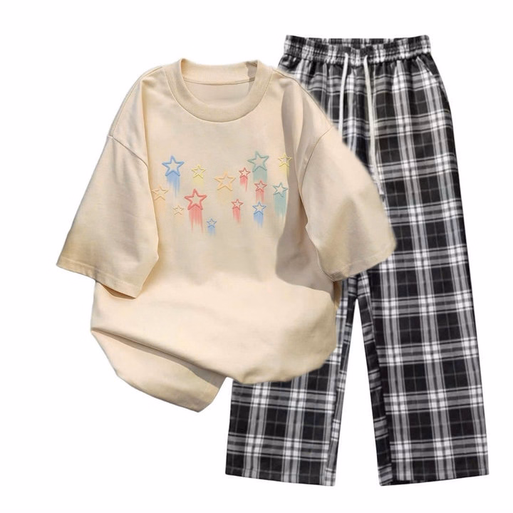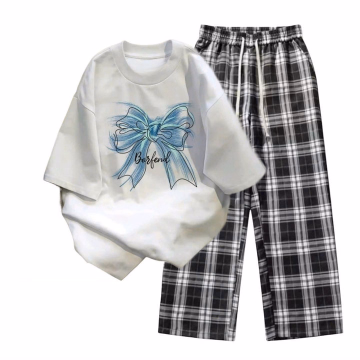– Tên Sản phẩm: Tổng hợp set bộ quần caro đen + mix áo phông form rộng tay lỡ chất cotton thoáng mát