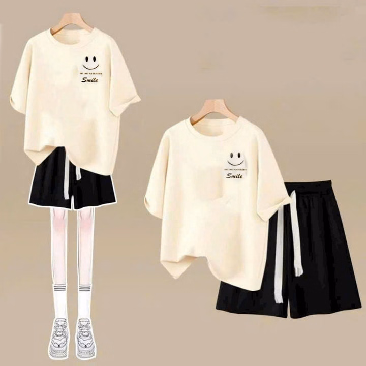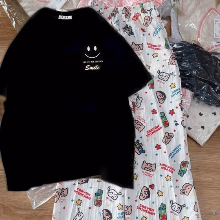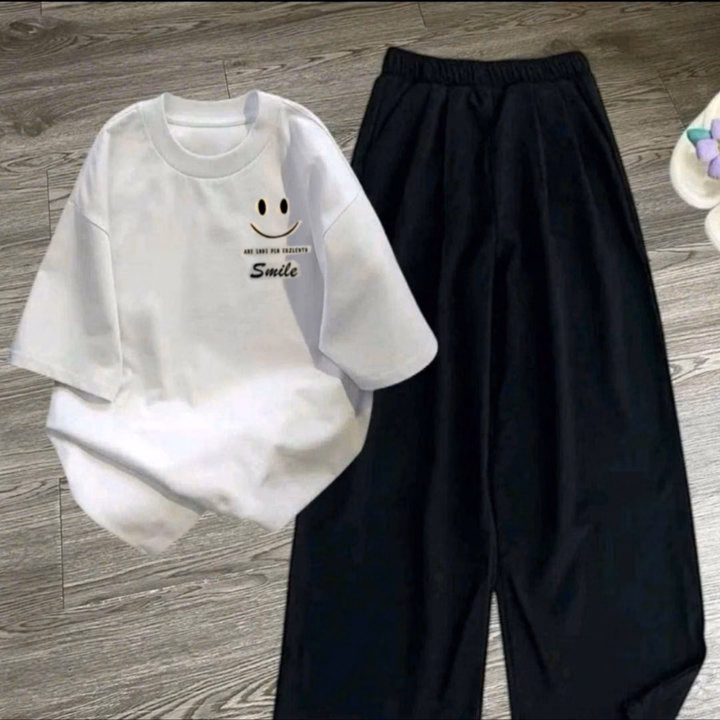 – Tên Sản phẩm: Tổng hợp set bộ quần chun+ áo phông form rộng tay lỡ-in hình mặt cười Smile 4 màu