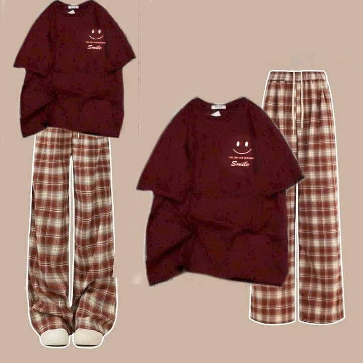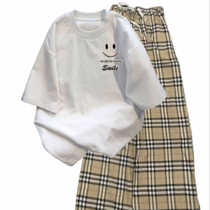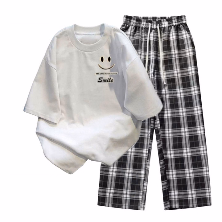 Tổng Hợp Set Bộ Quần Chun+ Áo Phông Form Rộng Tay Lỡ-In Hình Mặt Cười Smile 4 Màu