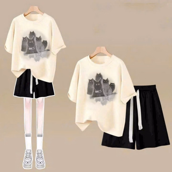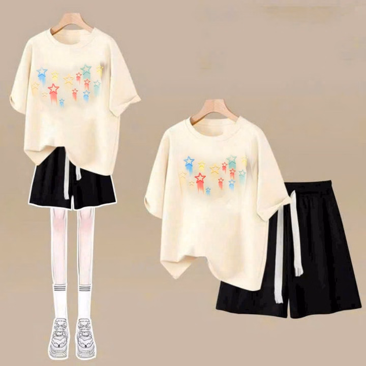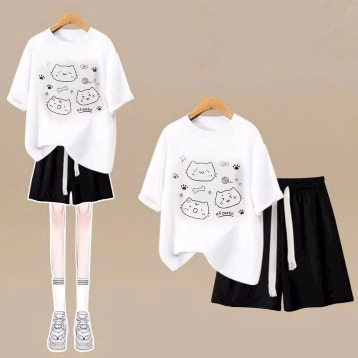 – Tên Sản phẩm: Tổng hợp set bộ quần đùi + mix áo phông form rộng tay lỡ chất cotton thoáng mát