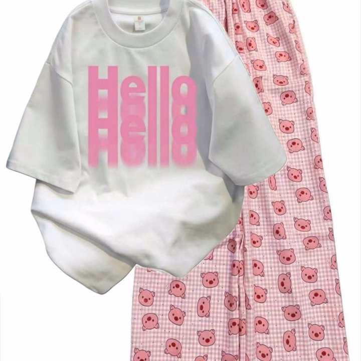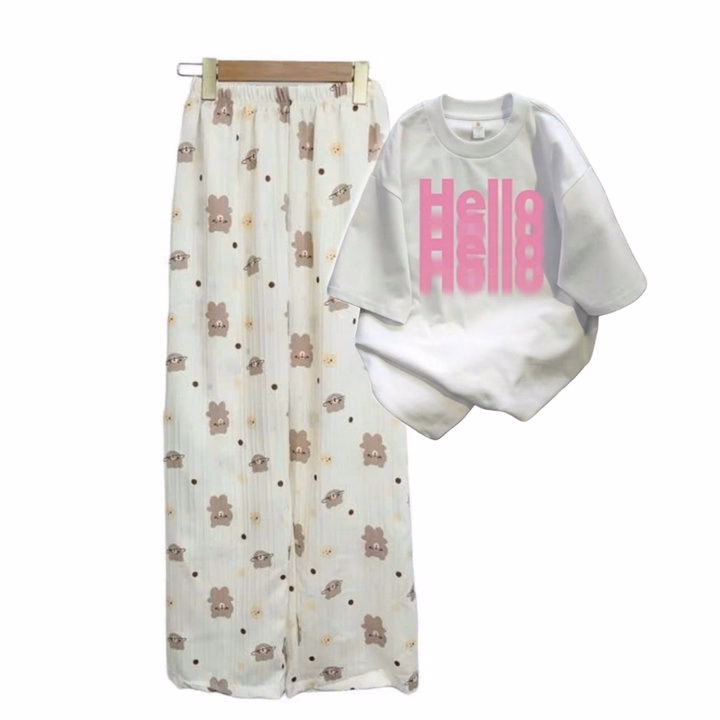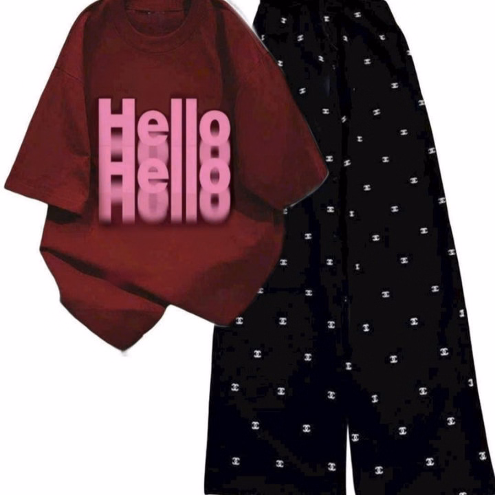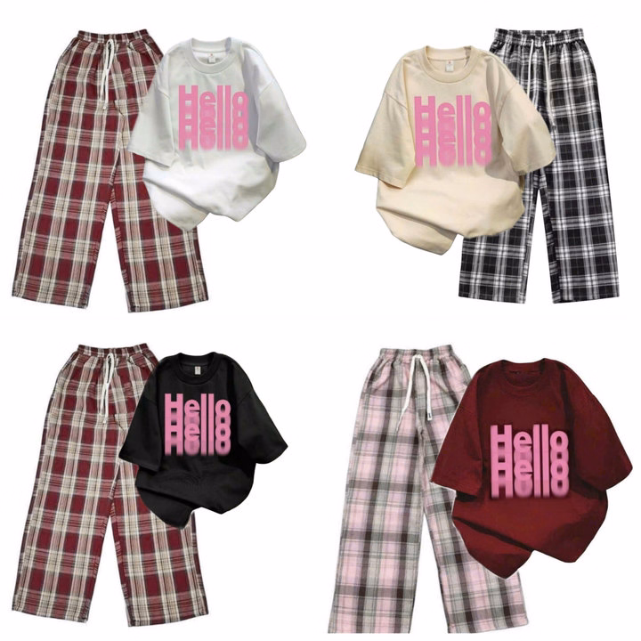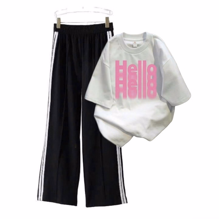 Tổng Hợp Set Bộ Quần Ống Suông Cạp Chun+Mix Áo Phông Mẫu Mới- Chữ He Lô