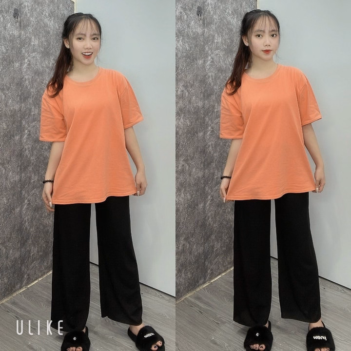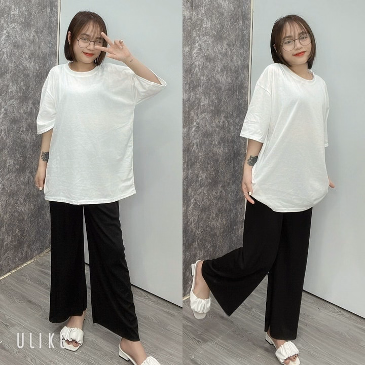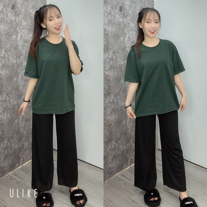 – Tên Sản phẩm: Tổng hợp set quần ống rộng đen kèm áo phông cotton khô trơn11 màu