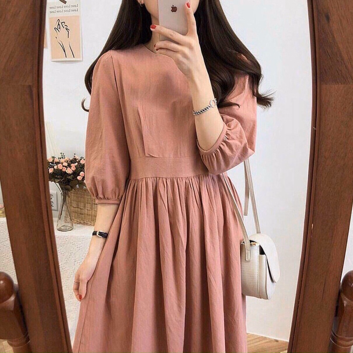 Váy Babydol Hồng Ruốc Tay Lở Bồng Dáng Dài Nữ Tính V91 – Cloudy Dress