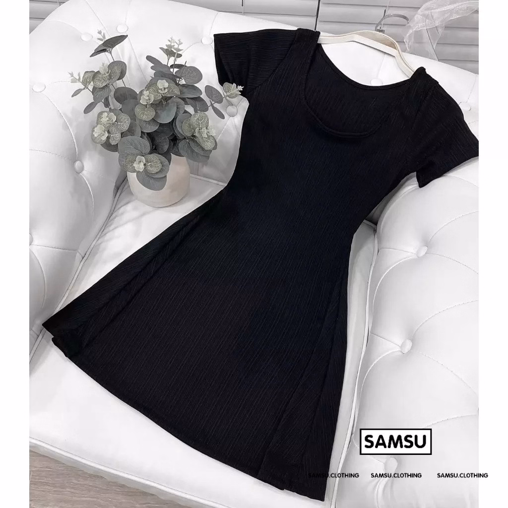 • – Tên Sản phẩm: Váy Bo Tăm Trơn Cổ Vuông Nữ