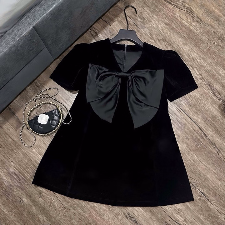 Váy Đen Baby Đính Nơ To Màu Đen,Chất Thô Hàn