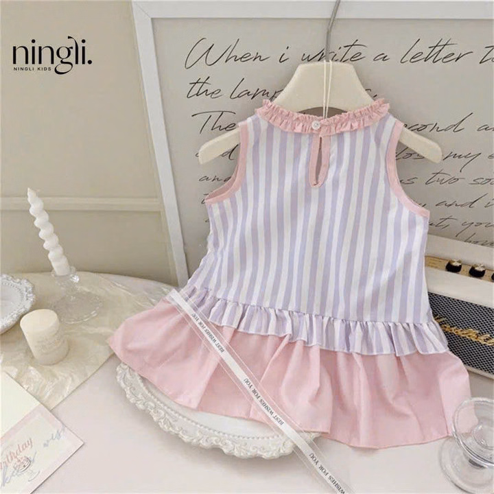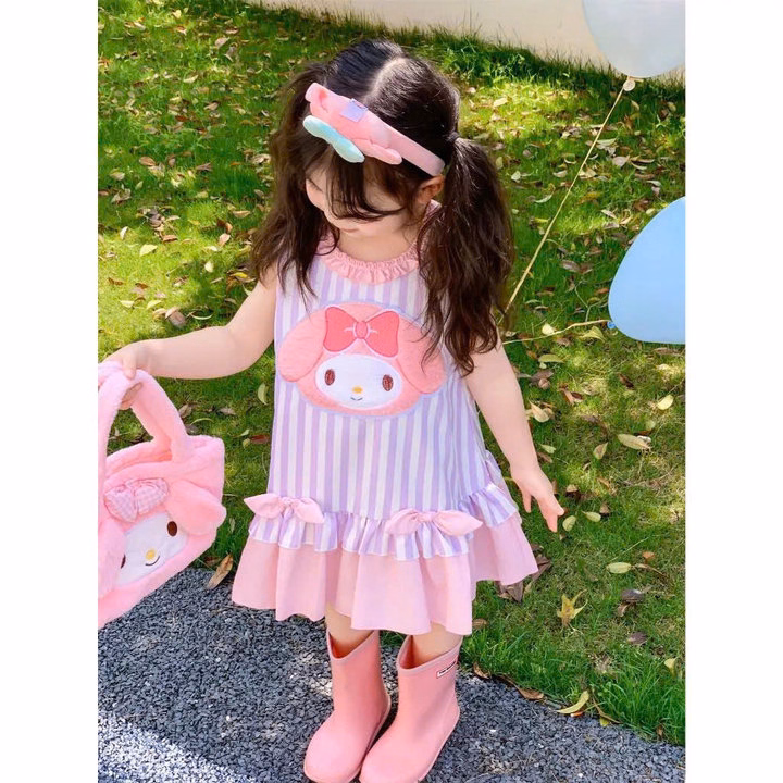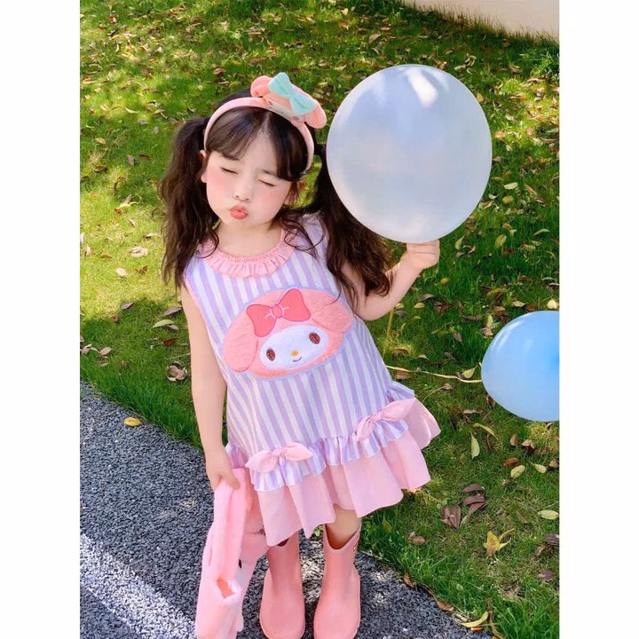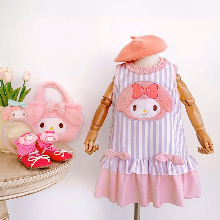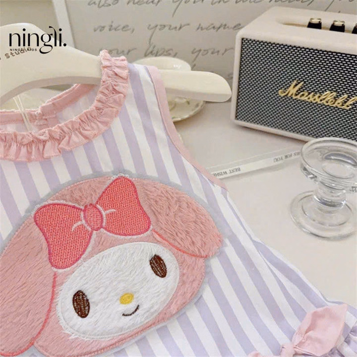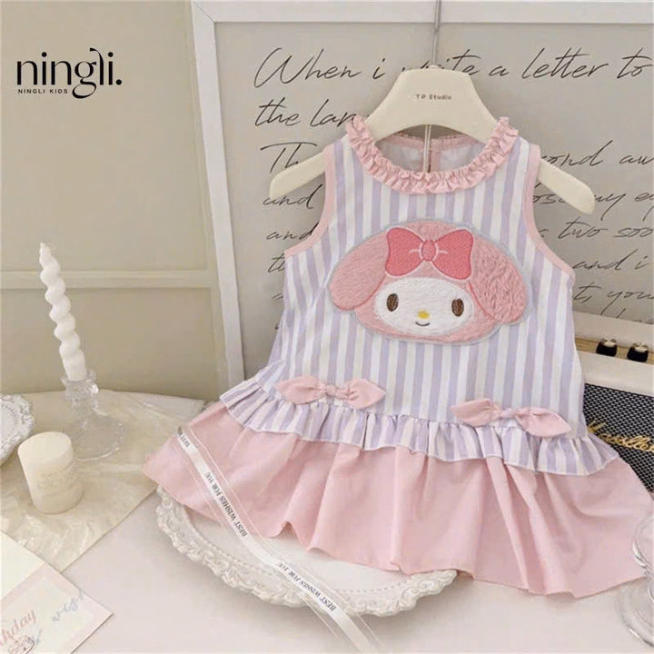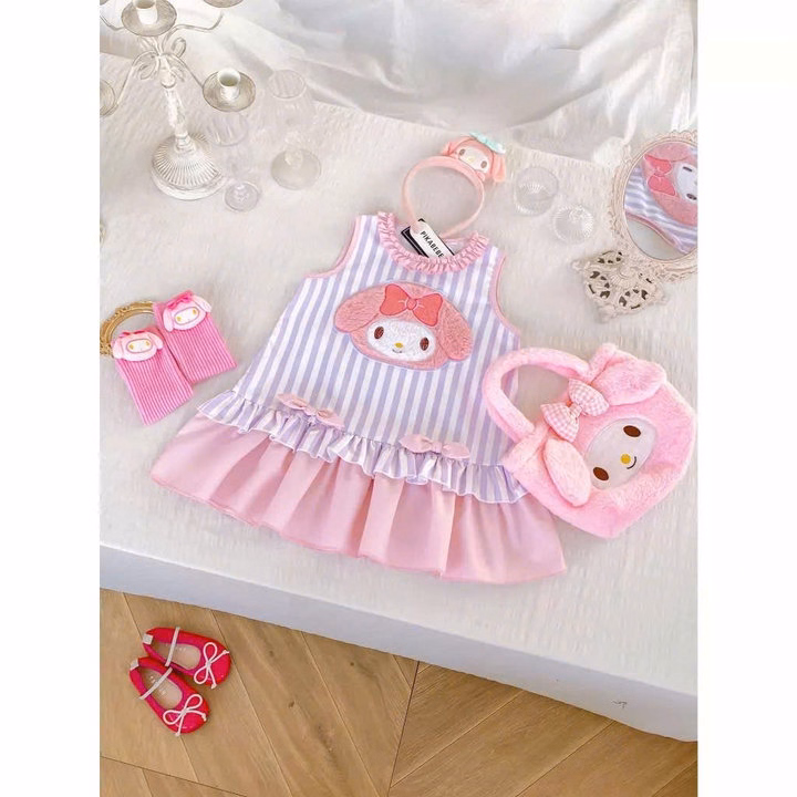 Váy Đuôi Cá Sọc Sát Nách Họa Tiết Melody Hồng Cho Bé Gái 1 – 5 Tuổi