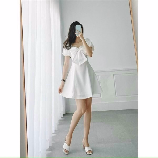 Váy Ngắn Màu Trắng Dán Chữ A Áo Kèm Nơ Xinh Xắn V105 – Cloudy Dress