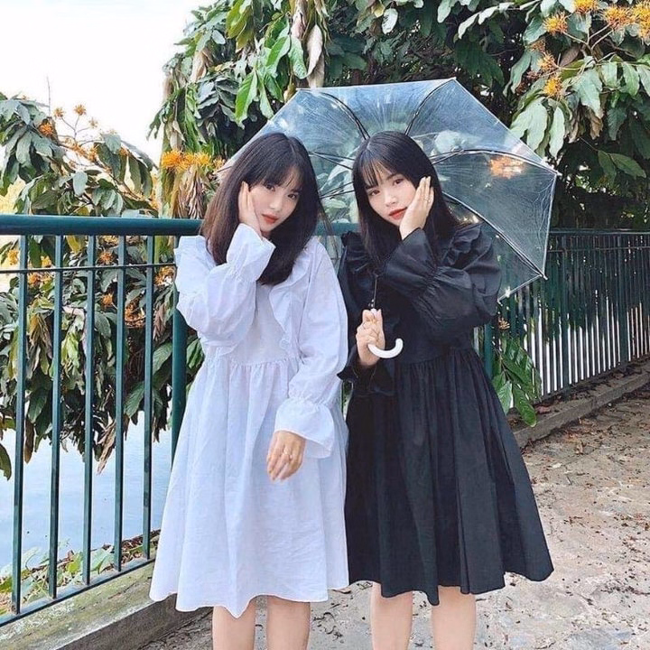 Váy Sơ Mi Bèo 2 Bên Vai Dáng Xoè Xinh Xắn