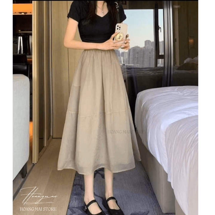 Váy Voan Tơ Dài Xòe Lưng Thun – Hoàng Mai Fashion